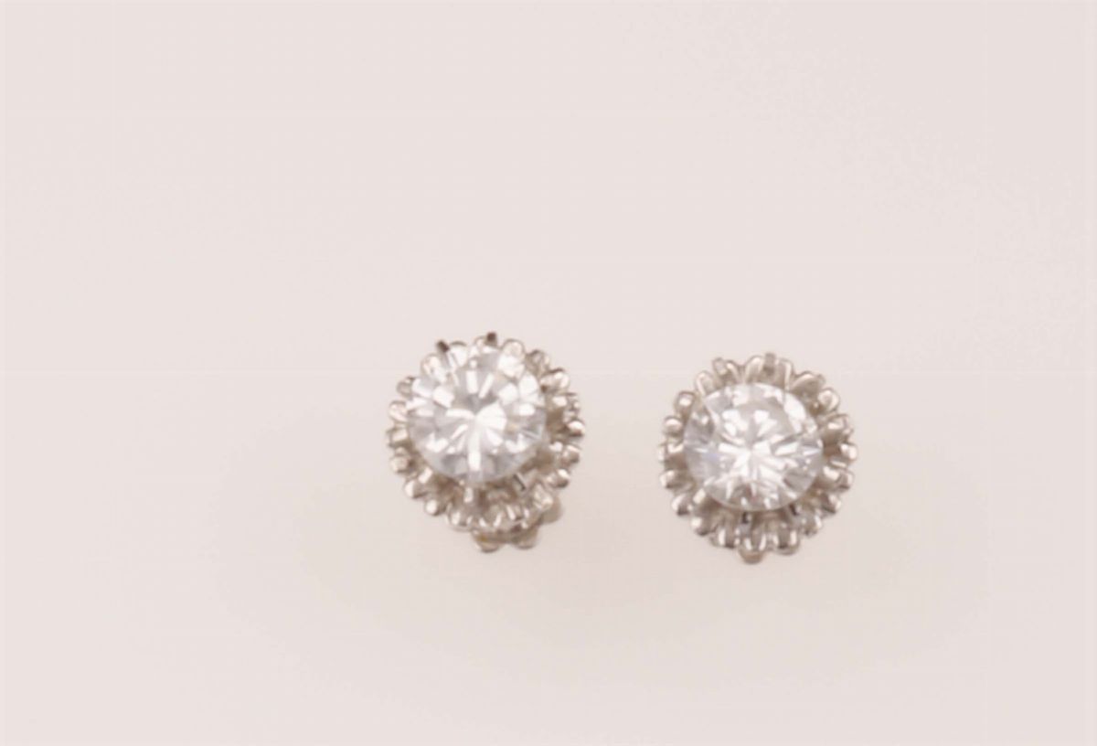 Coppia di diamanti taglio brillante di ct 1,39 e 1,44, colore F e E, caratteristiche interne VS1 e VVS2
