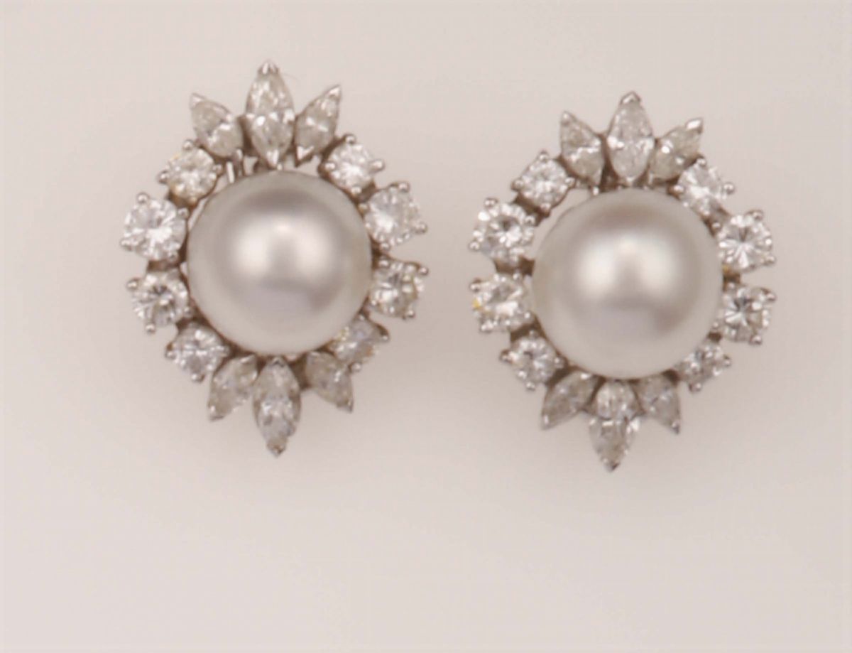 Orecchini con perla Australia con diamanti taglio brillante e navette a contorno