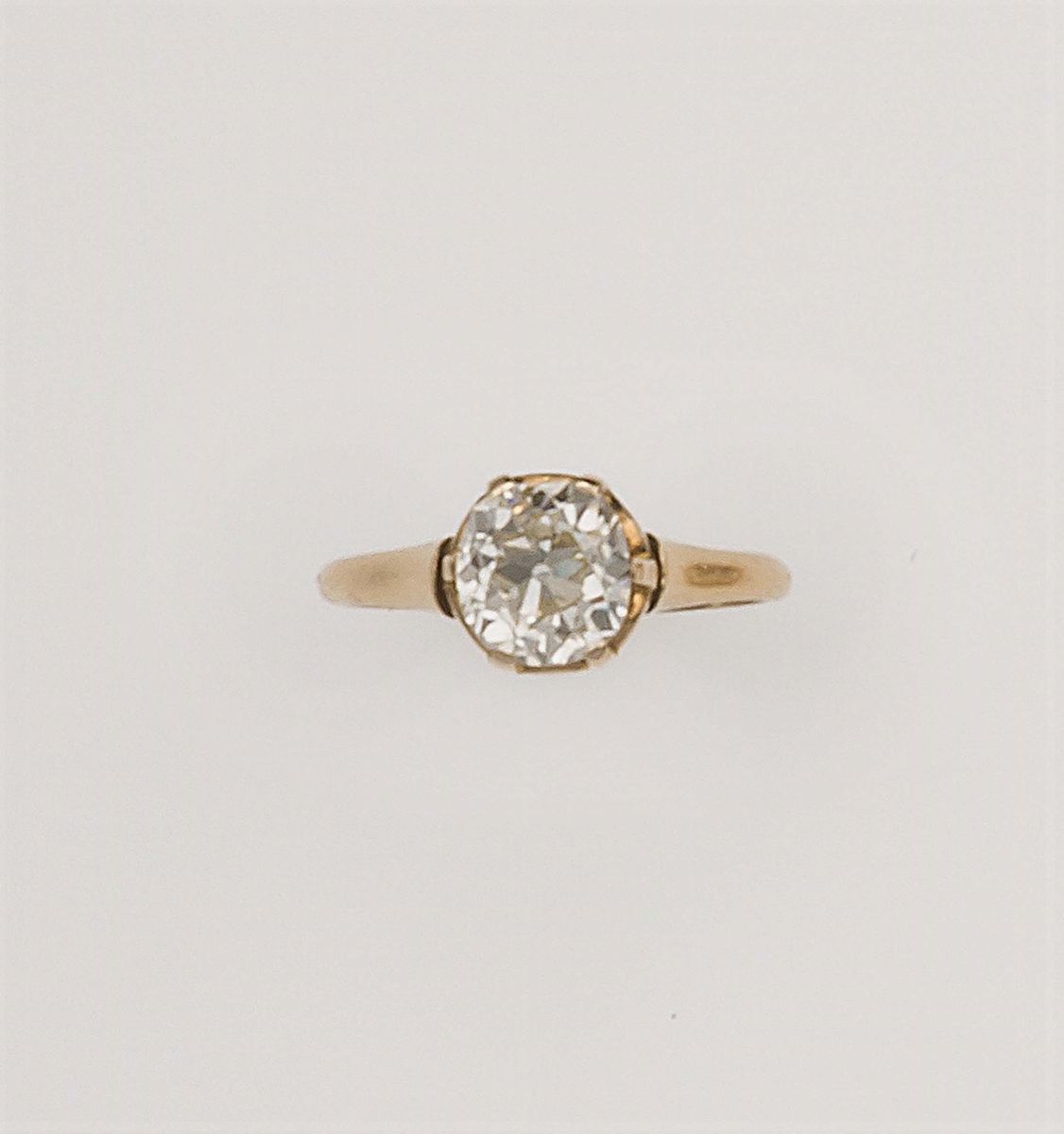 Solitaire diamante di vecchio taglio, a cuscino di ct 1,50 circa