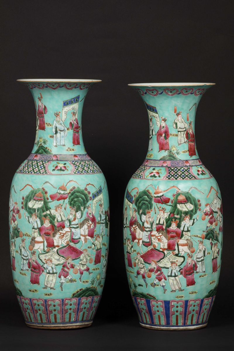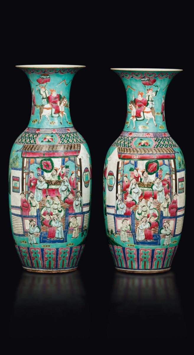 Coppia di vasi in porcellana Canton con scene di vita di corte, Cina, Dinastia Qing, XIX secolo