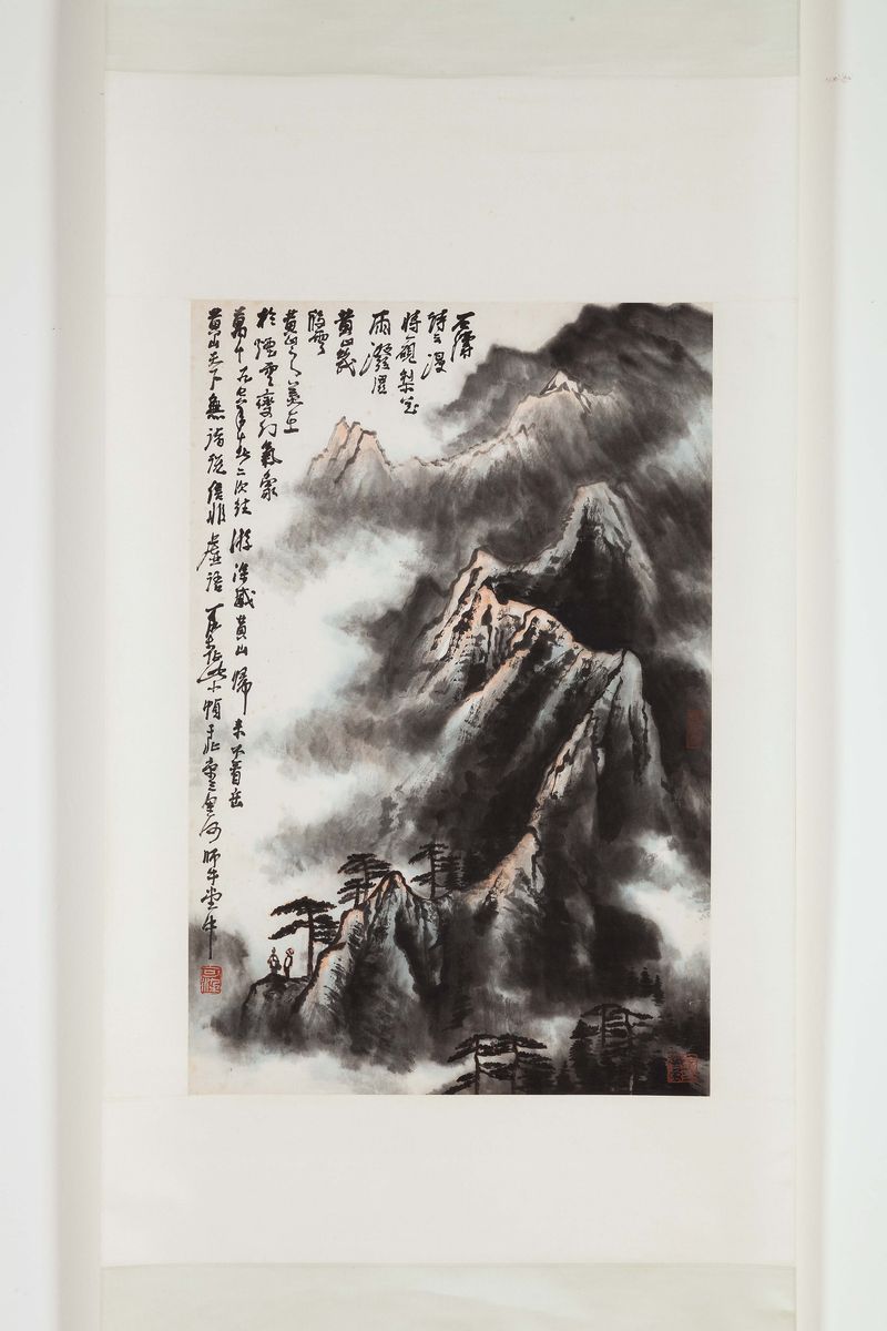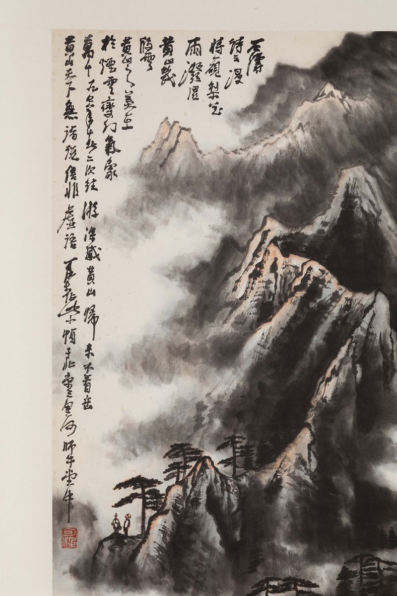 Dipinto su carta raffigurante paesaggio montano con poesia, Cina, Dinastia Qing, XIX secolo