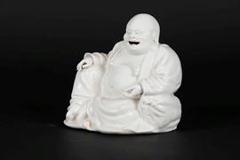 Figura di Budai in porcellana Blanc de Chine Dehua, Cina, Dinastia Qing, XVIII secolo
