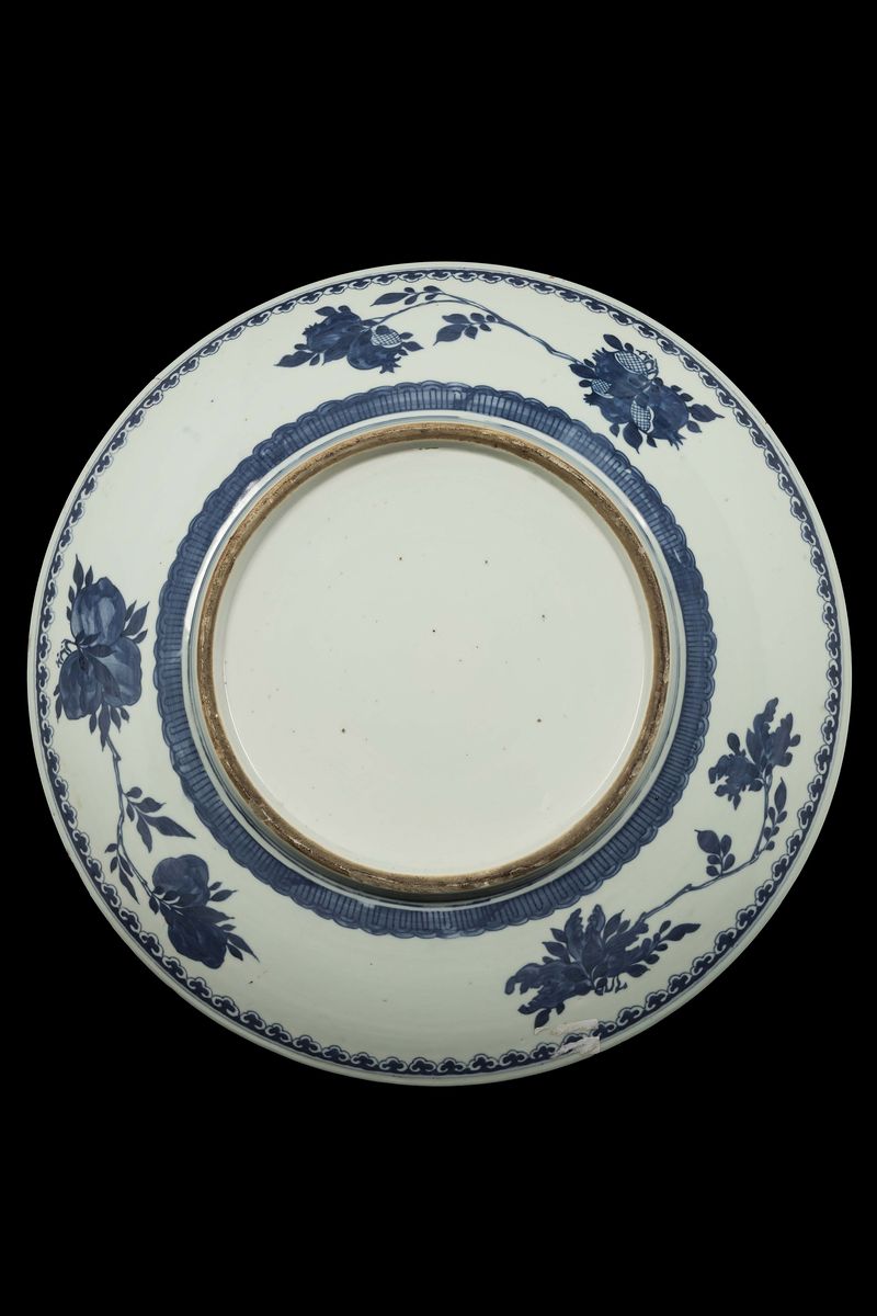 Grande piatto in porcellana bianca e blu con decoro di draghi, Cina, Dinastia Qing, epoca Guangxu (1875-1908)