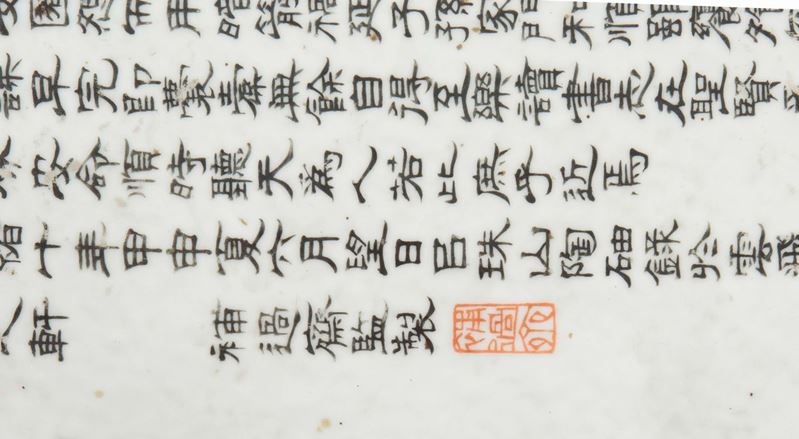 Placca in porcellana smaltata con iscrizione, Cina, Dinastia Qing, XIX secolo