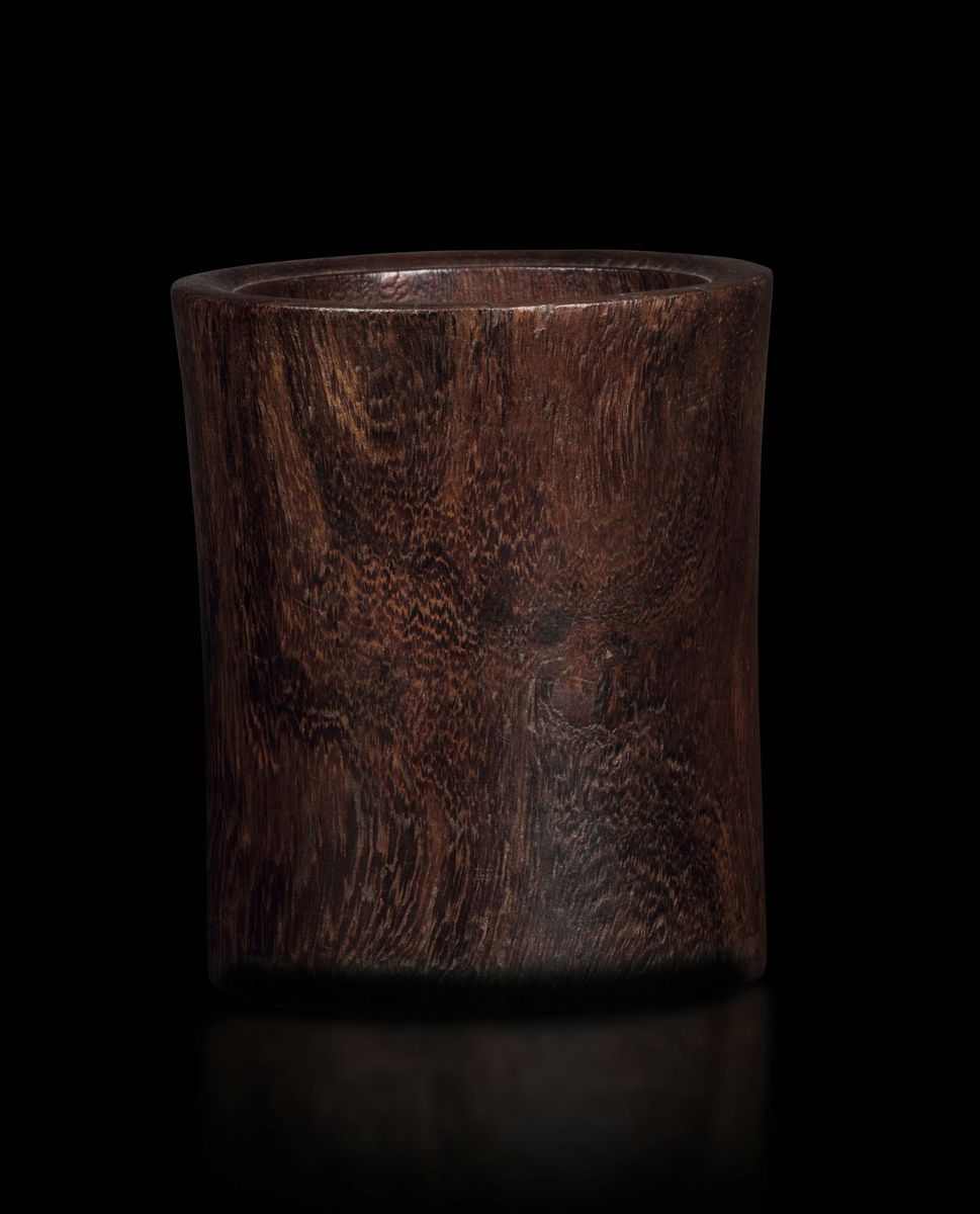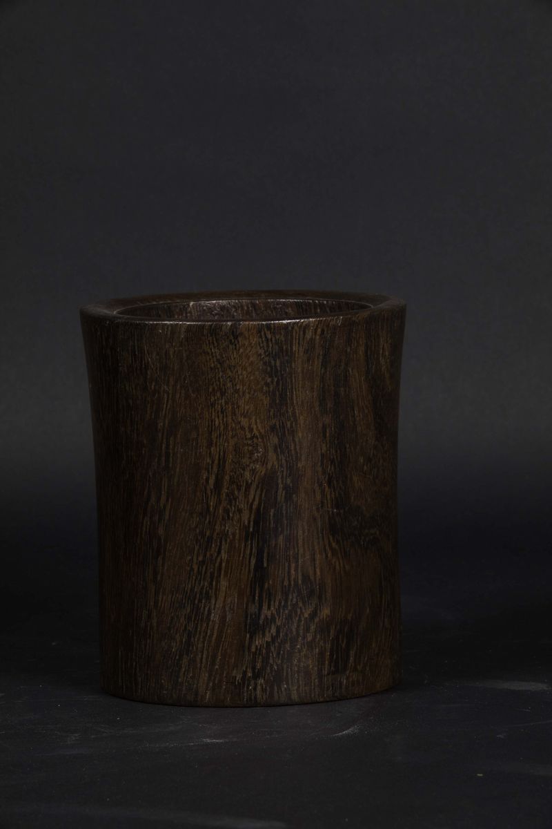Portapennelli cilindrico in legno jichimu, Cina, Dinastia Qing, epoca Qianlong (1736-1796)