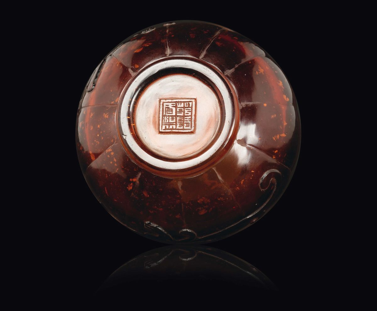 Sciacquapennelli in ambra con draghetto a rilievo, Cina, Dinastia Qing, XIX secolo