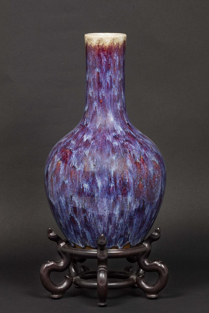 Vaso a bottiglia in porcellana flambè sui toni del viola, Cina, Dinastia Qing, XIX secolo