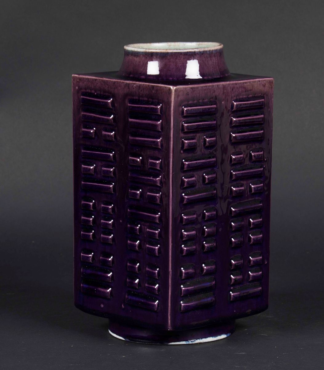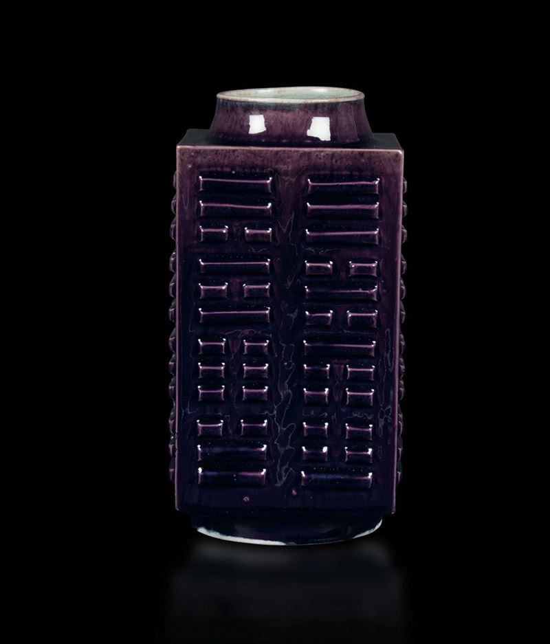 Vaso Cong in porcellana monocroma viola, Cina, Dinastia Qing, XIX secolo