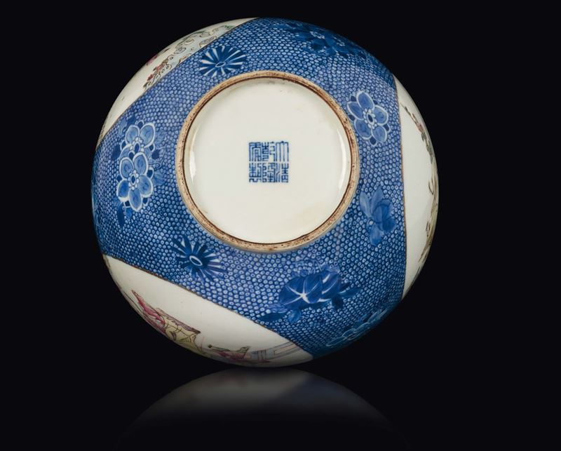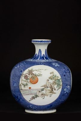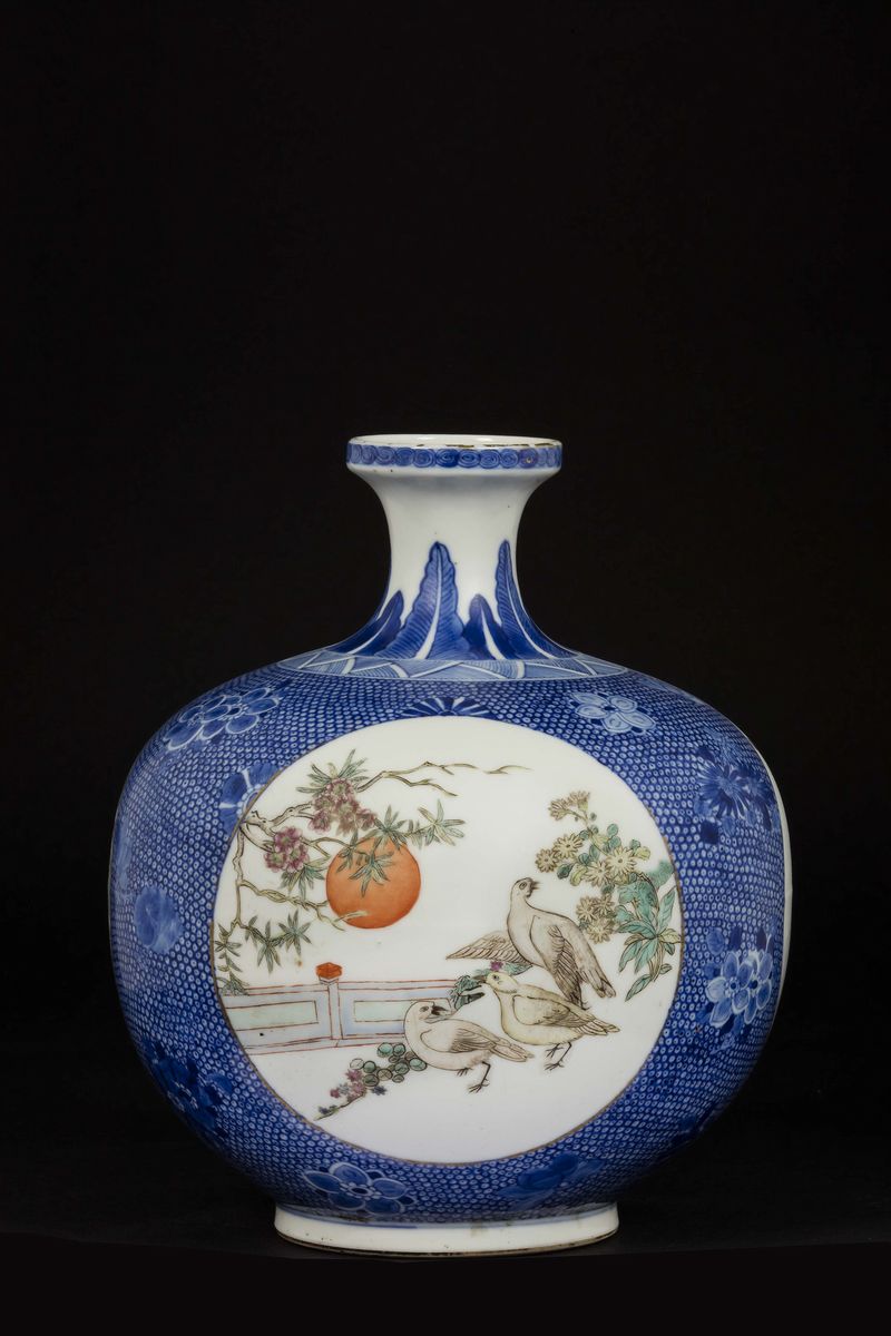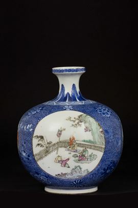 Vaso in porcellana a smalti policromi con raffigurazioni di scene di vita di corte entro riserve, Cina, Dinastia Qing, fine [..]