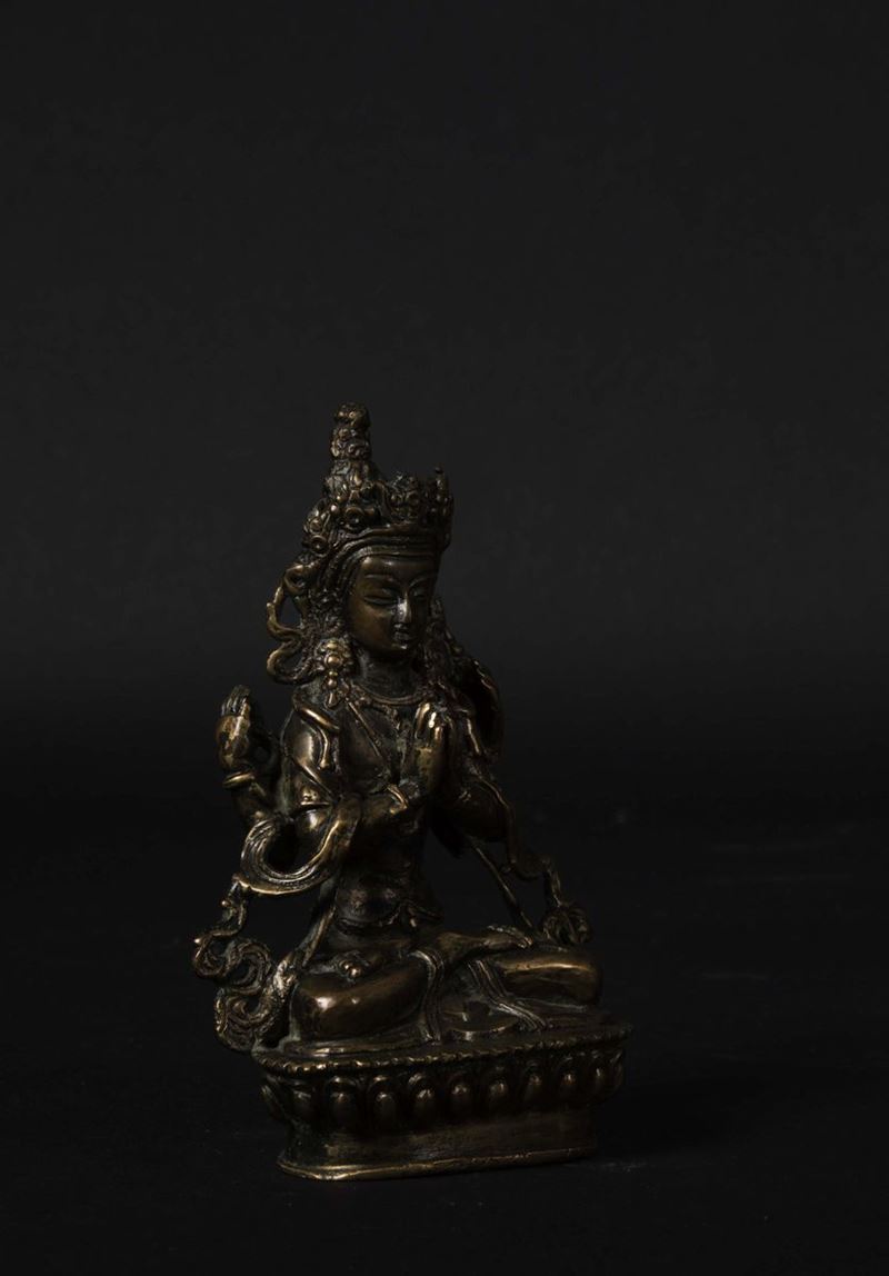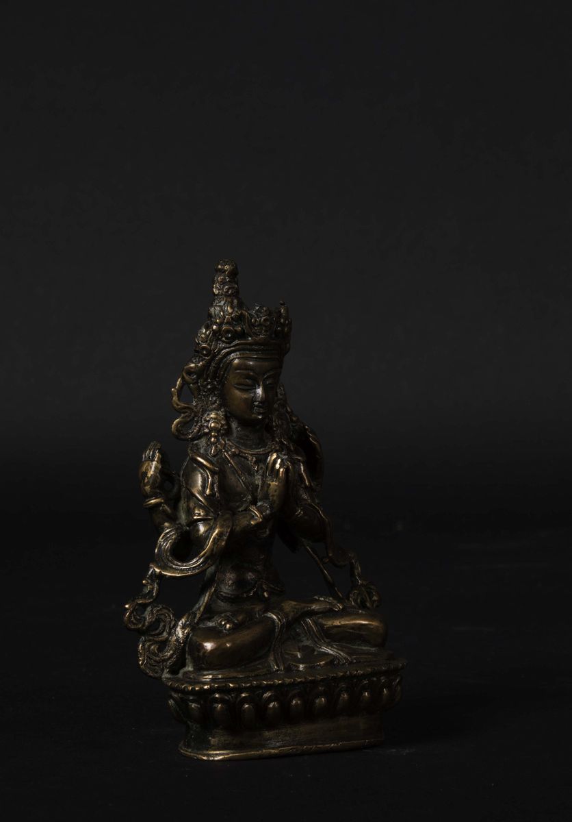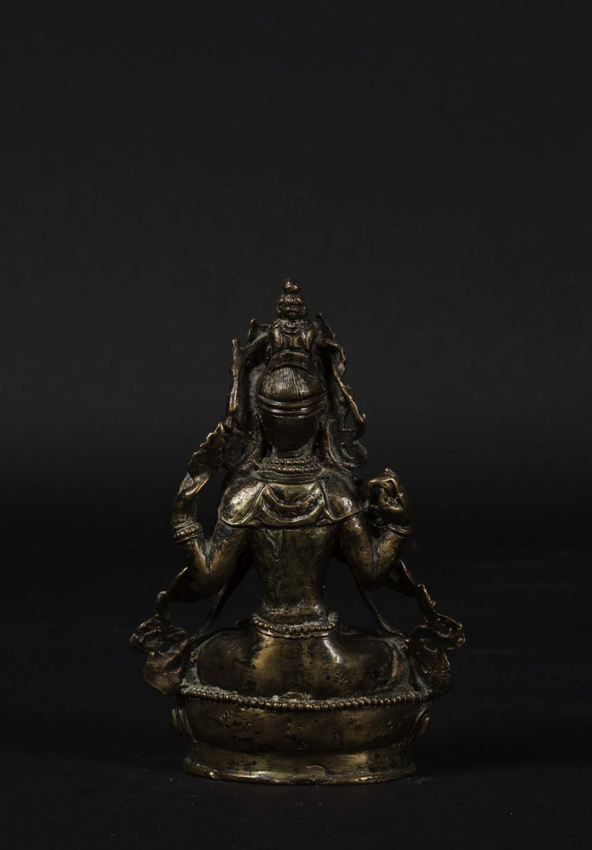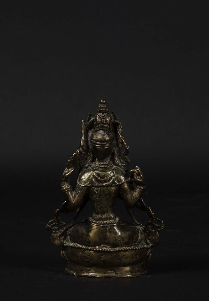 Figura di Avalokitesvara seduta su fiore di loto in bronzo, Tibet/Nepal, XV secolo