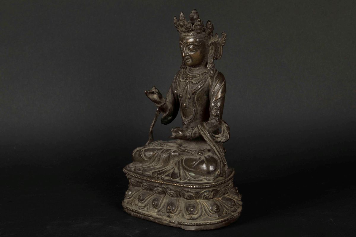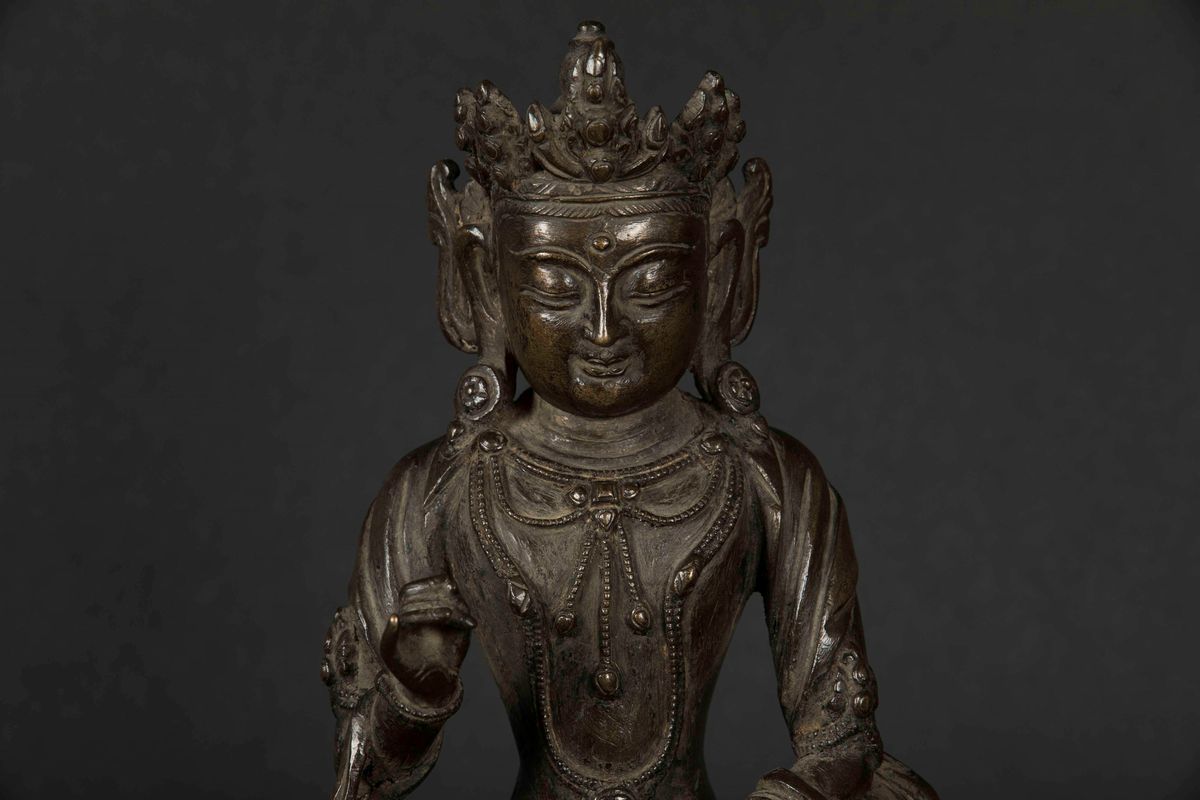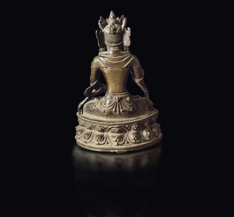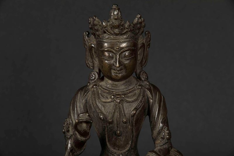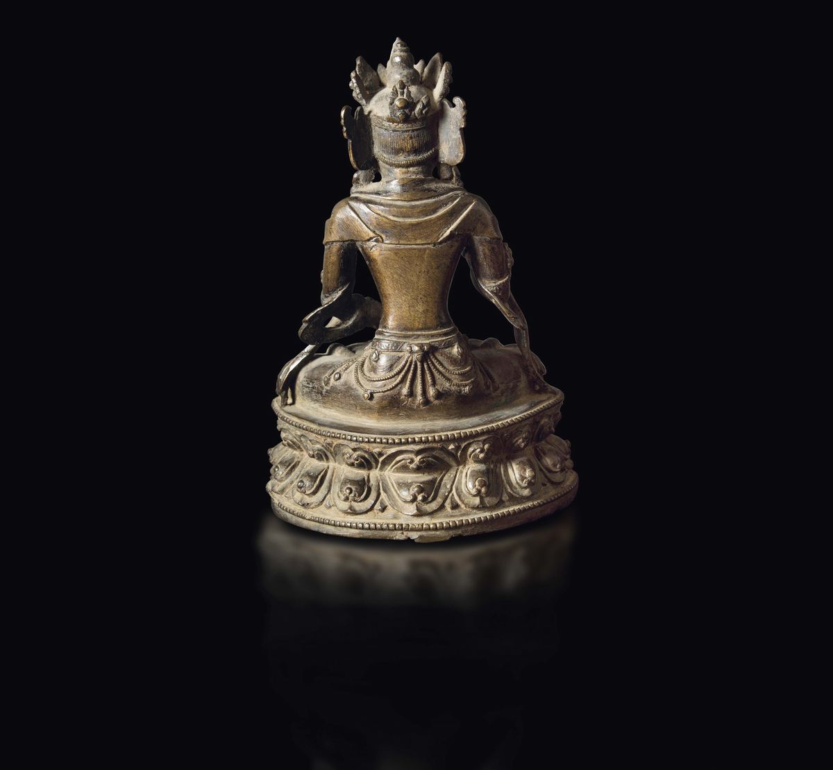 Figura di Buddha in bronzo seduto su doppio fiore di loto, Cina, Dinastia Ming, marchio e del periodo Zhengde (1506-1521) [..]