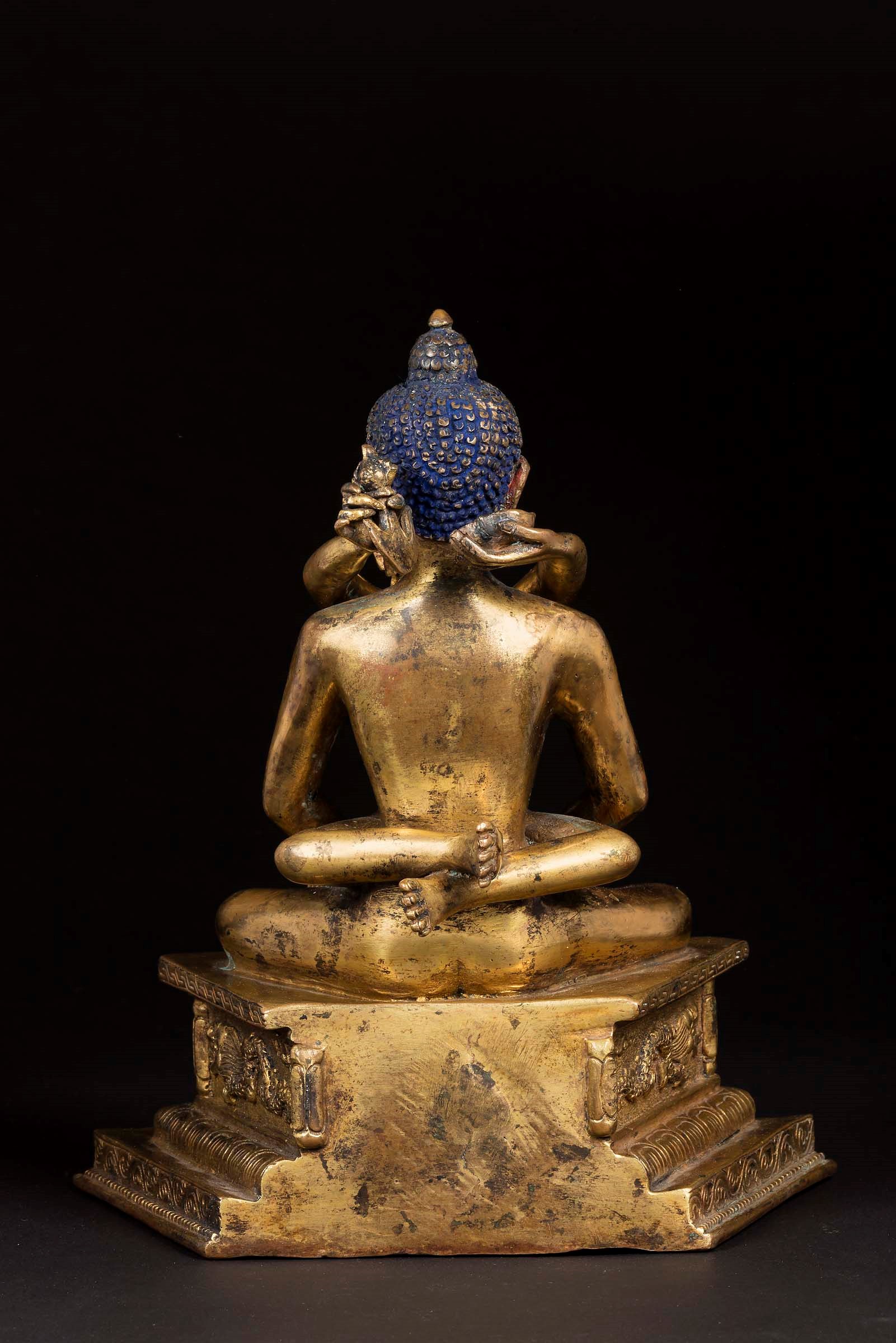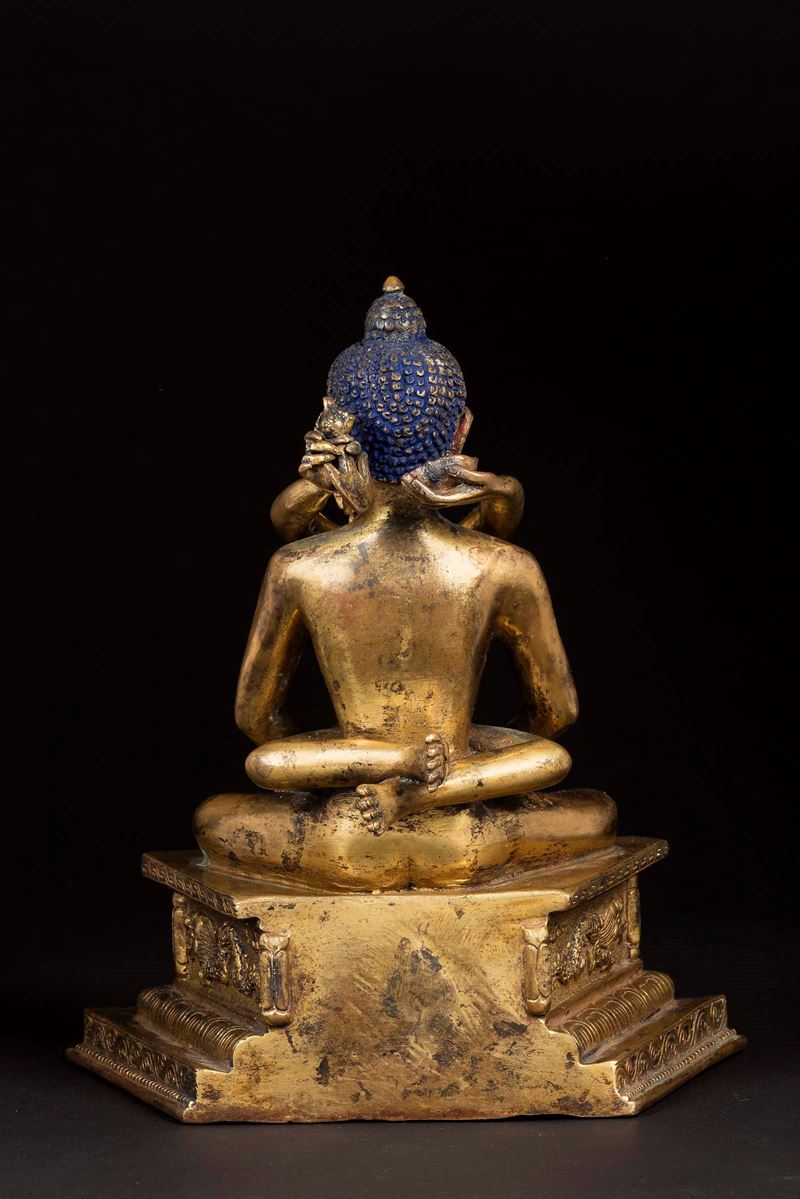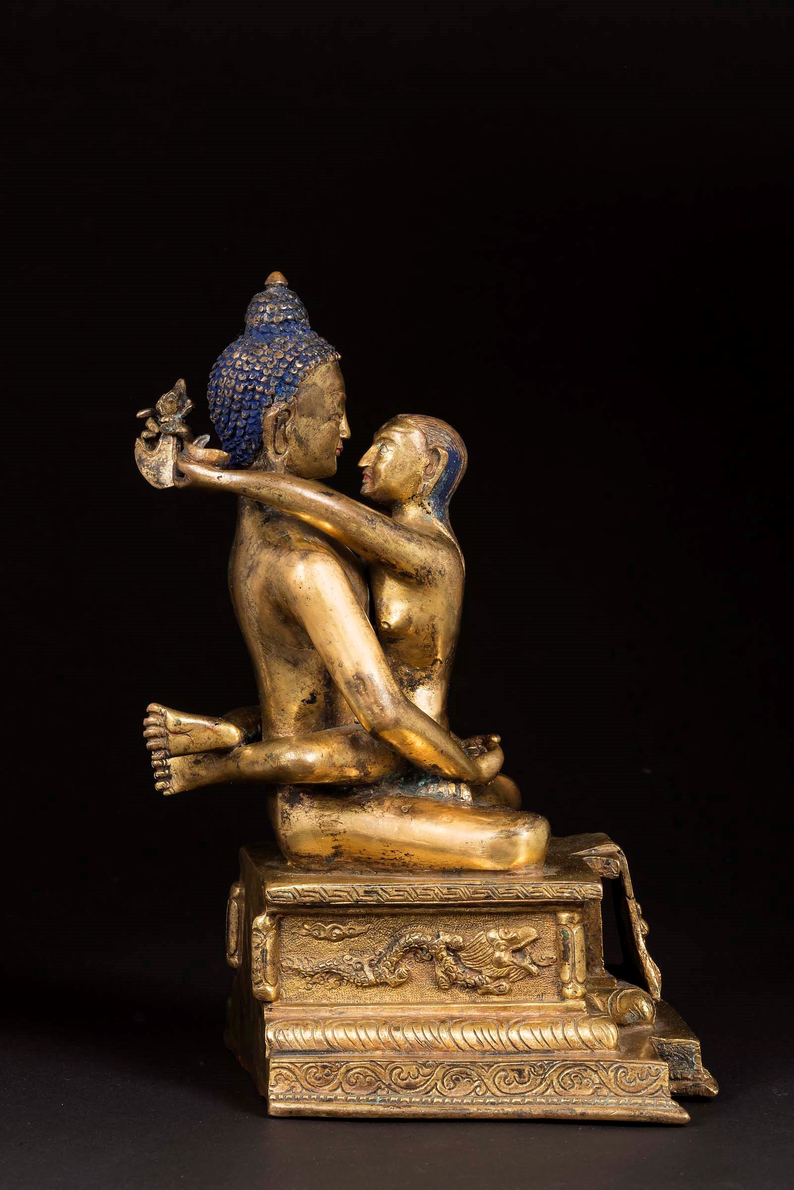 Figura di Buddha Sakyamuni in Yab-yum in bronzo dorato, Tibet, XVI secolo