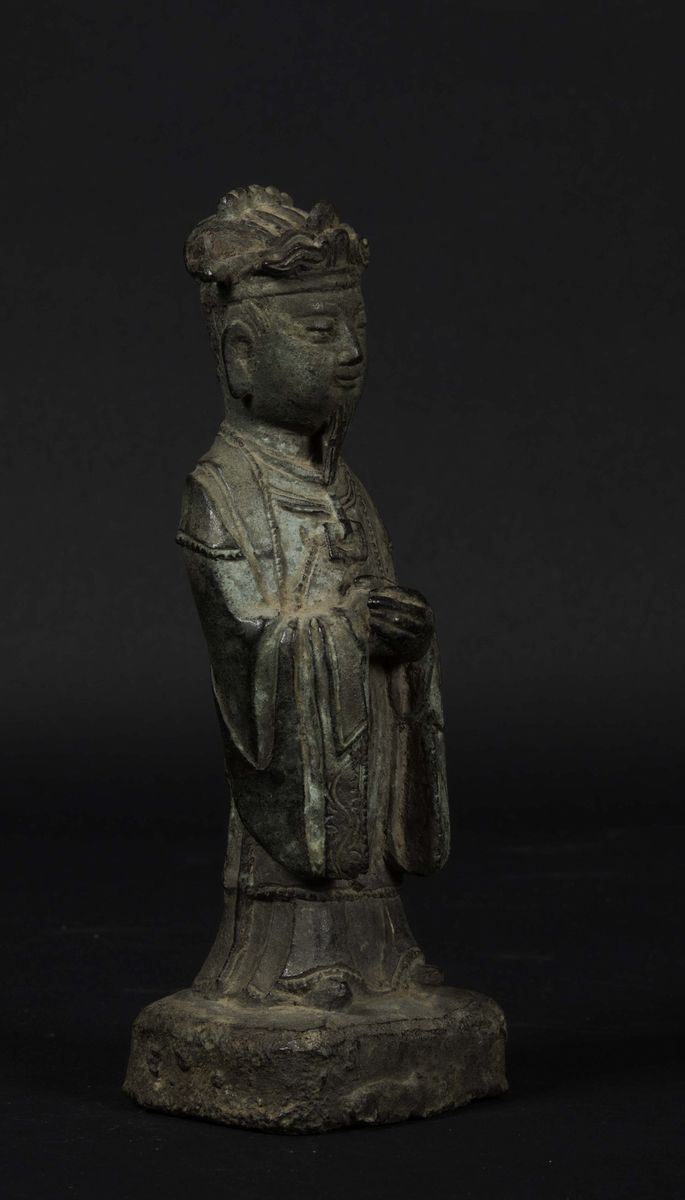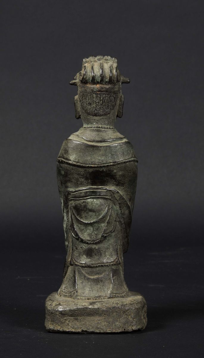 Figura di dignitario eretto in bronzo, Cina, Dinastia Ming, XVII secolo