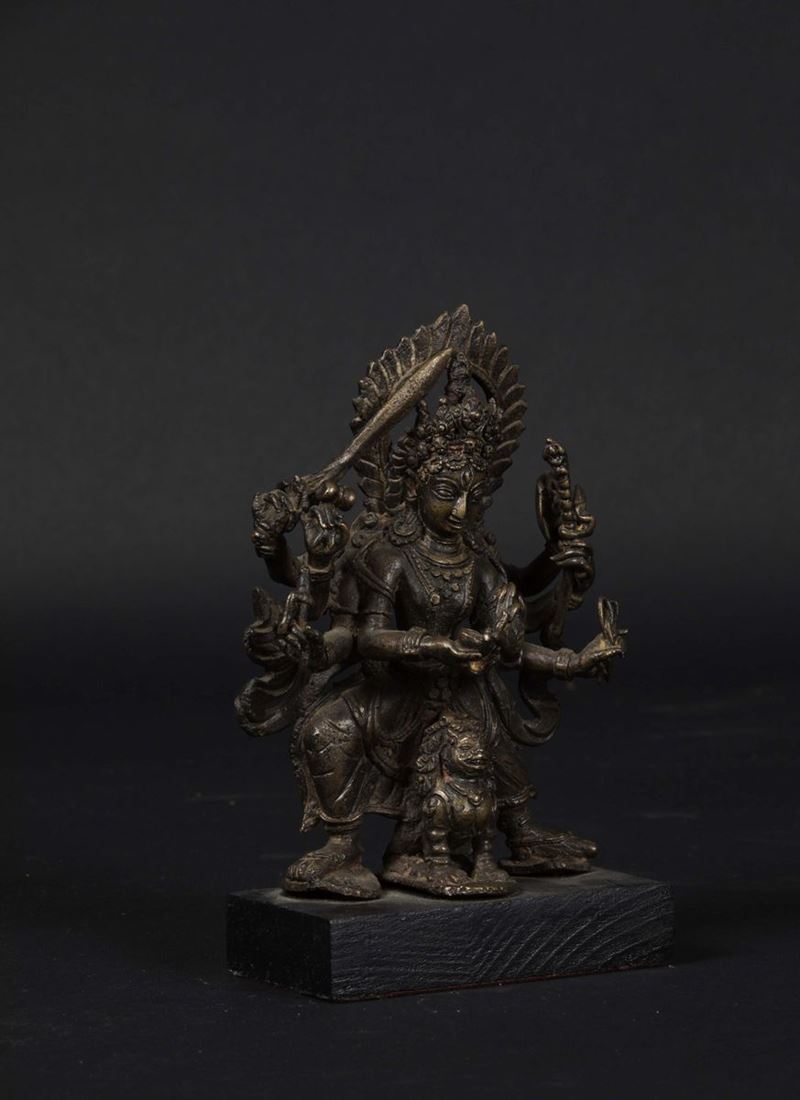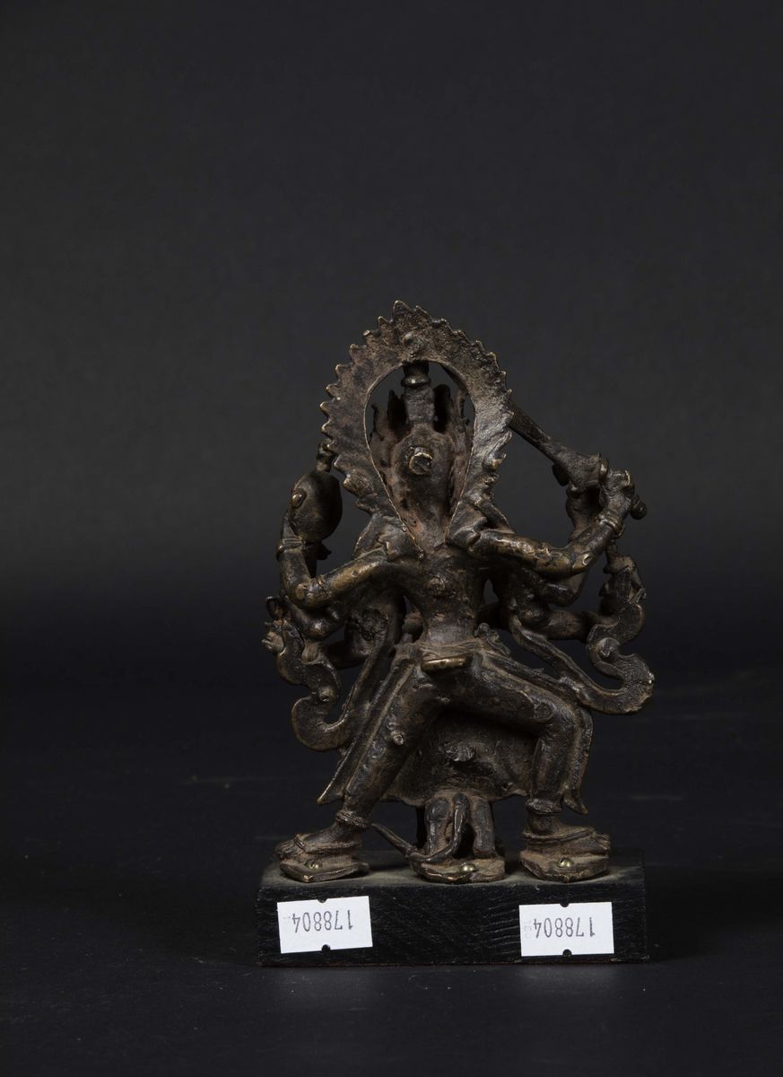 Figura di divinità con aura e simboli del potere in bronzo, Nepal, XVI secolo