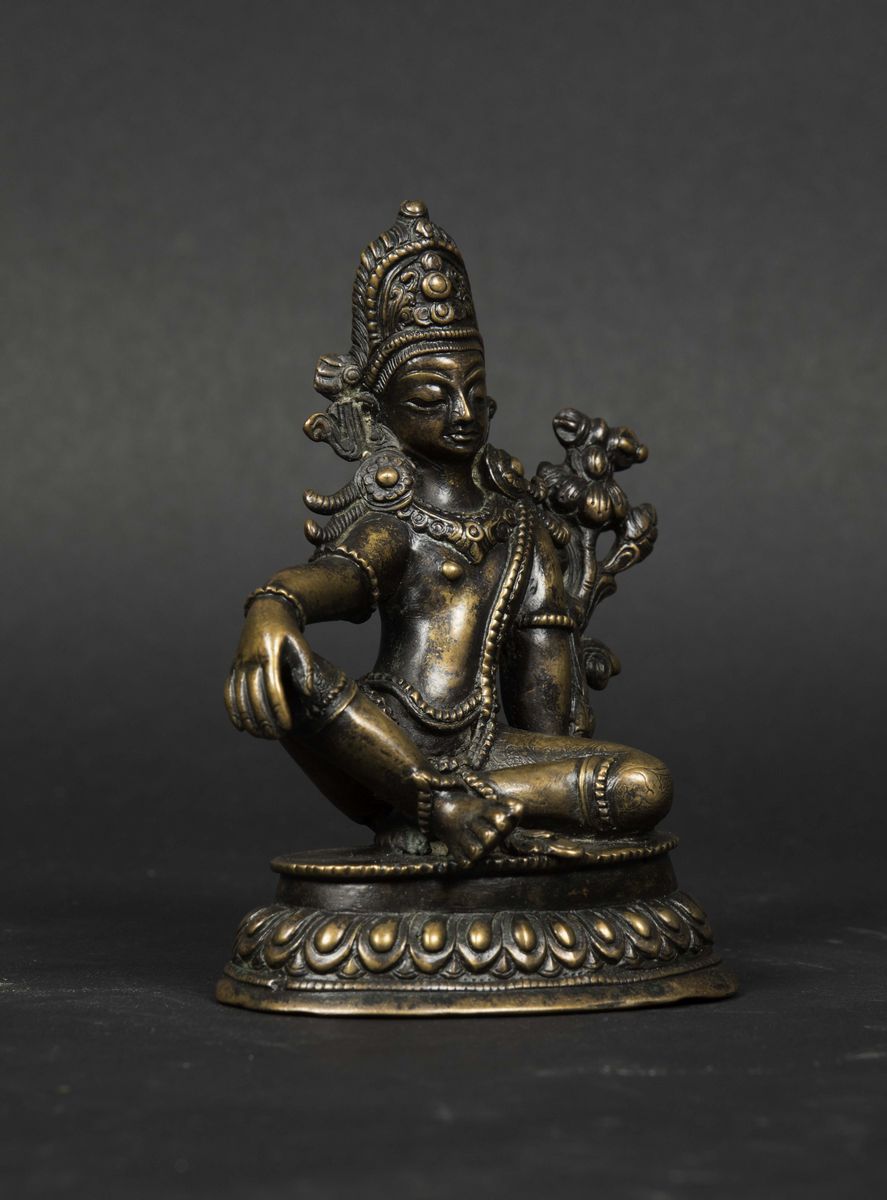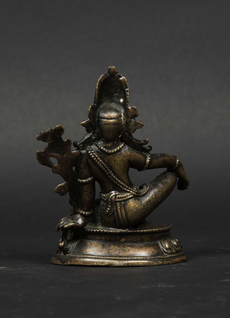 Figura di Indra seduta su fiore di loto in bronzo, Nepal, XV-XVI secolo