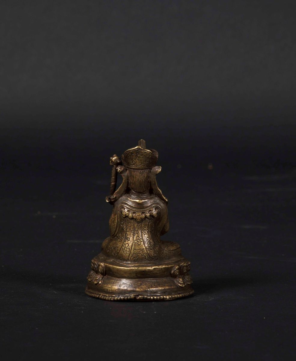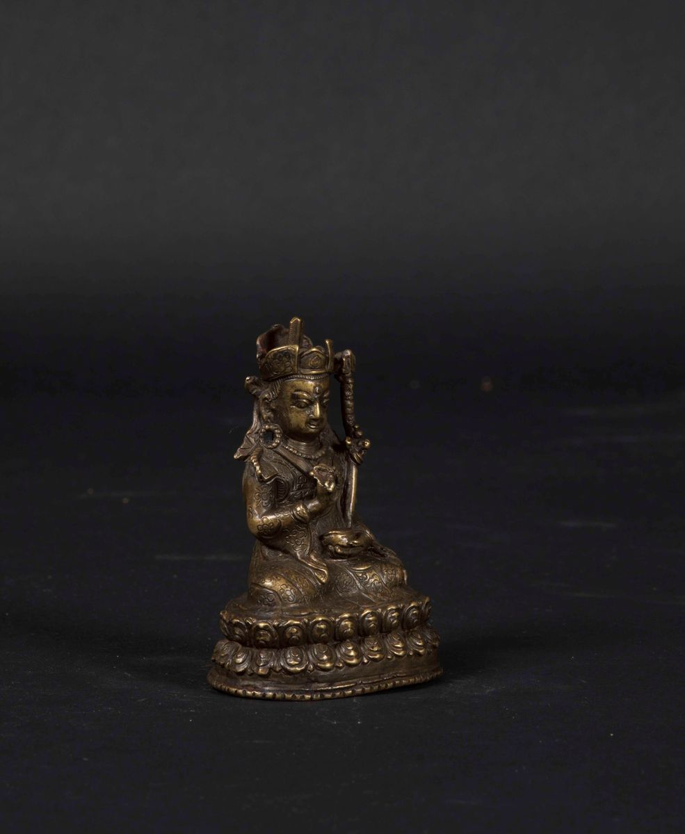 Figura di Lama su doppio fiore loto in bronzo, Tibet, XVI-XVII secolo