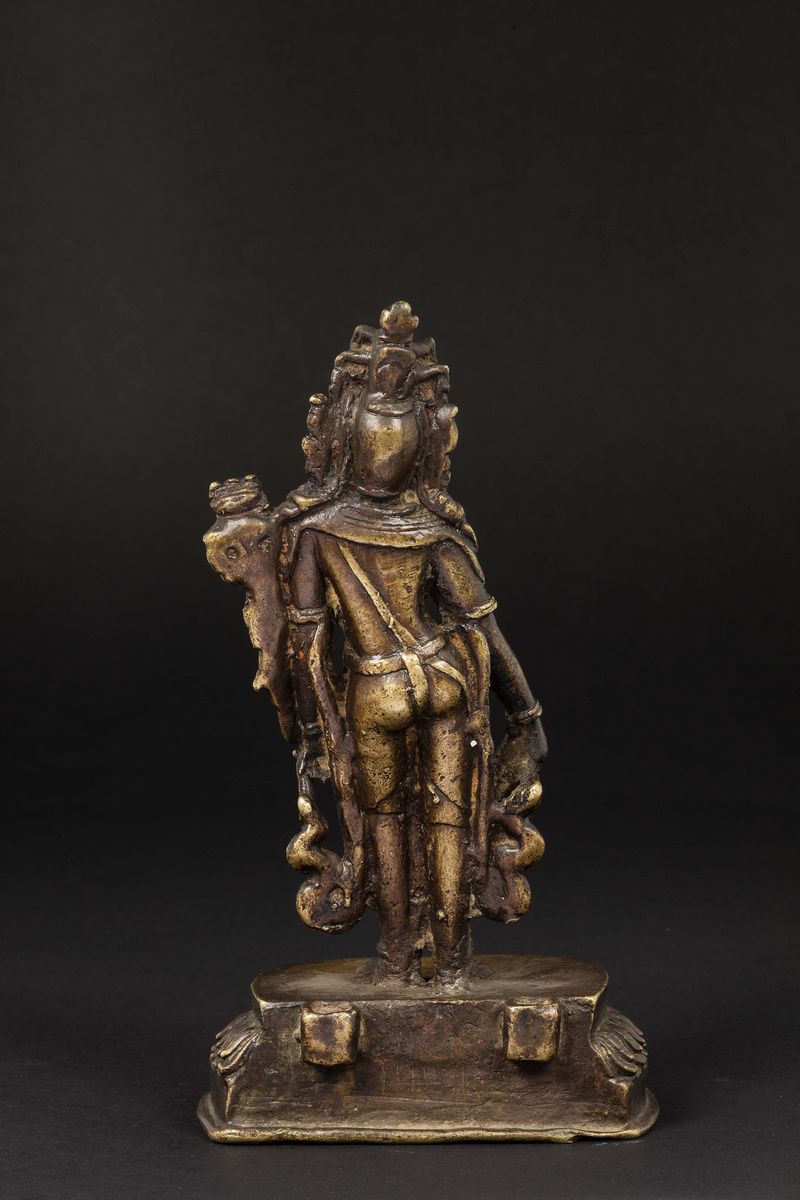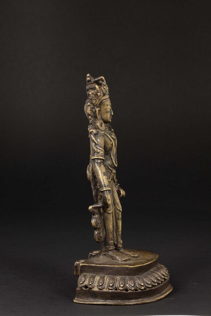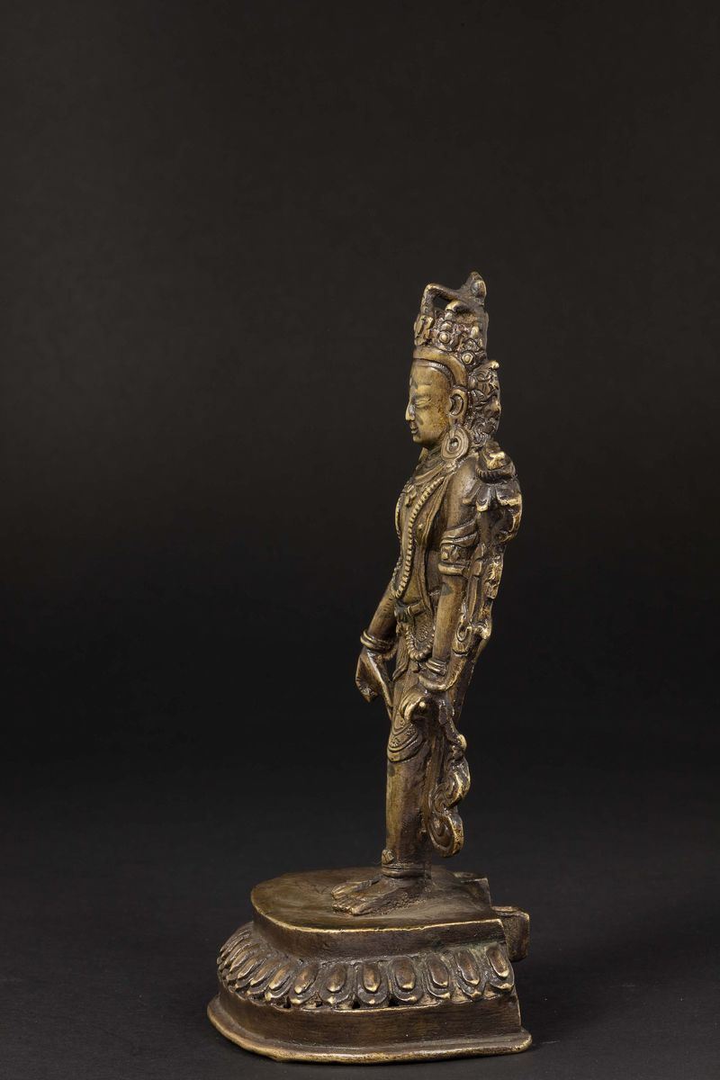 Figura di Padmapani in bronzoeretto su fiore di loto, Nepal, XV-XVI secolo