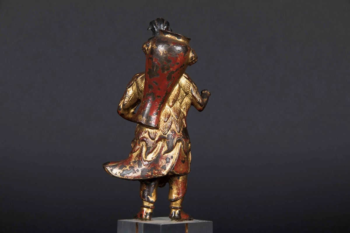Figura di uomo con vaso sulla schiena in bronzo dorato a freddo e con tracce di laccatura, Cina, Dinastia Ming, XVII seco [..]