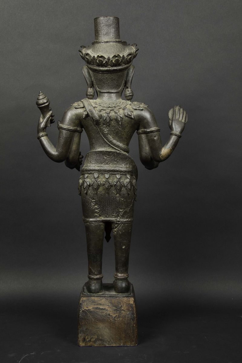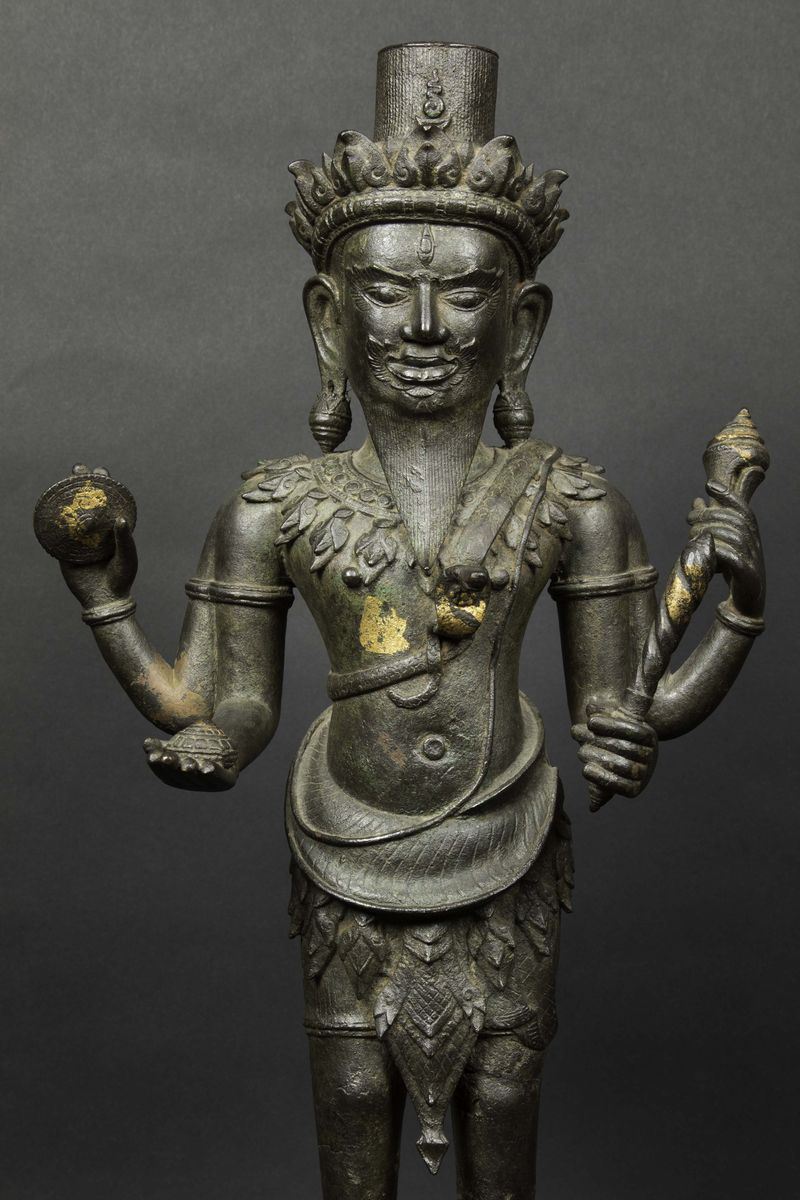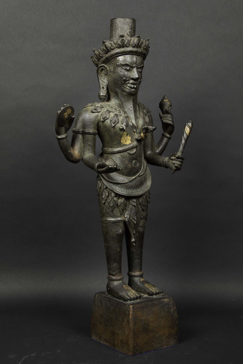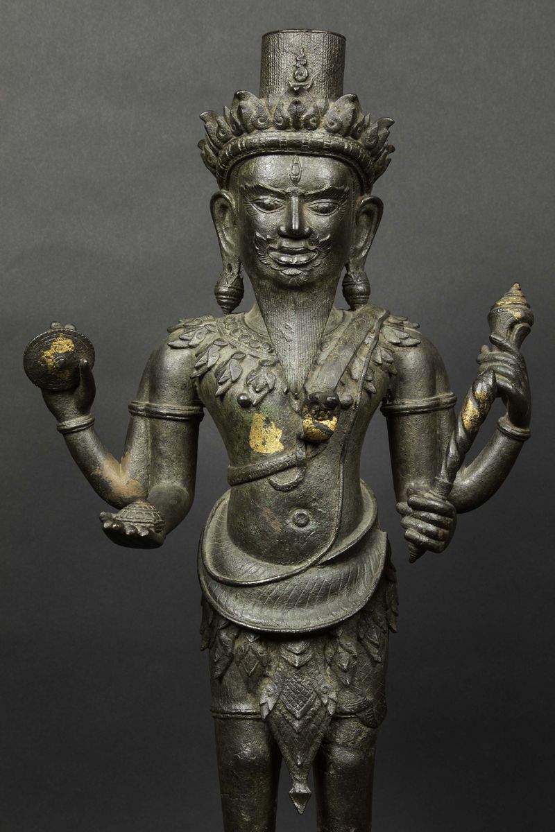 Figura di Vishvakarman eretto in bronzo con tracce di doratura, Cambogia, XVII secolo