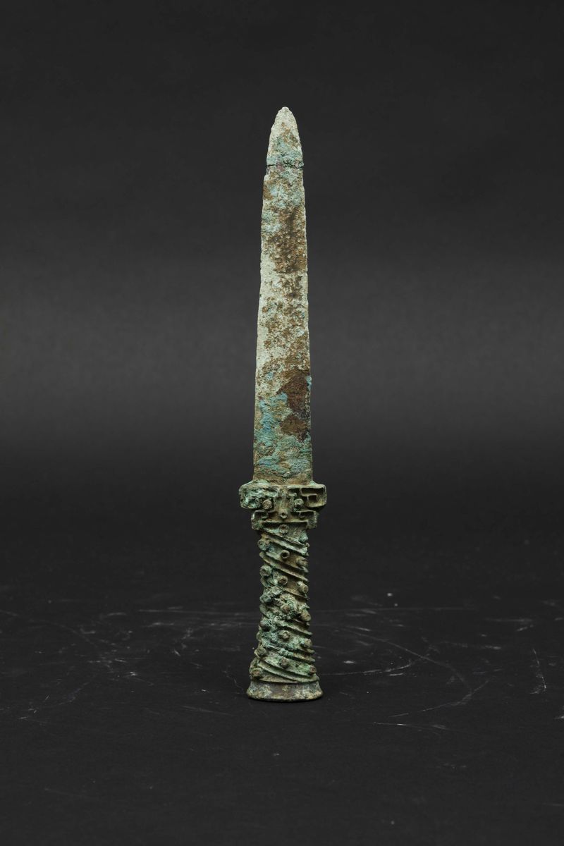 Pugnale in bronzo con impugnatura decorata con motivo a spirale, Cina, Dinastia Han (206 a.C.-220 d.C.)