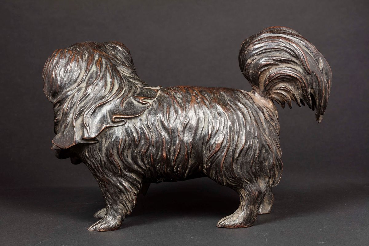 Scultura in bronzo raffigurante cane, Giappone, Epoca Meiji, XIX secolo
