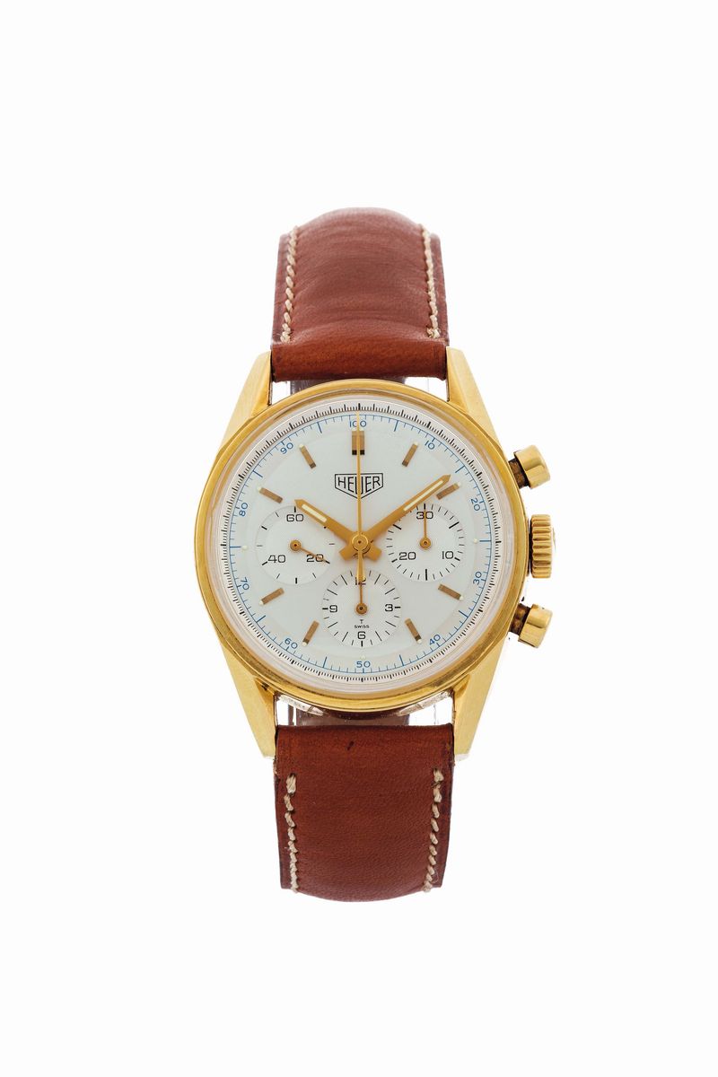 HEUER, Chronograph, Carrera, 1964 re-edition, No. 1026, Ref. CS3140. orologio da polso, cronografo, in oro giallo 18K , [..]