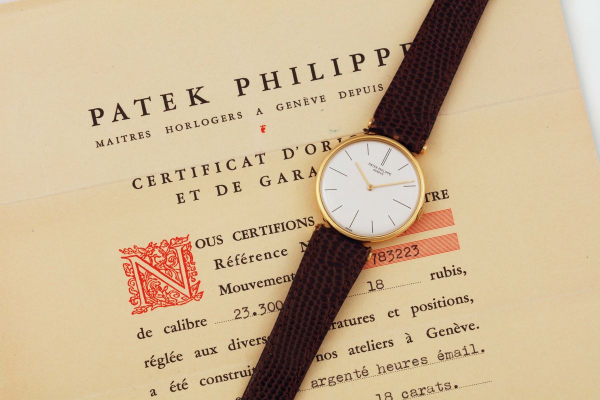 PATEK PHILIPPE, Geneve, movimento No. 783223, Ref. 2592J. Orologio da polso, elegante, in oro giallo 18K.