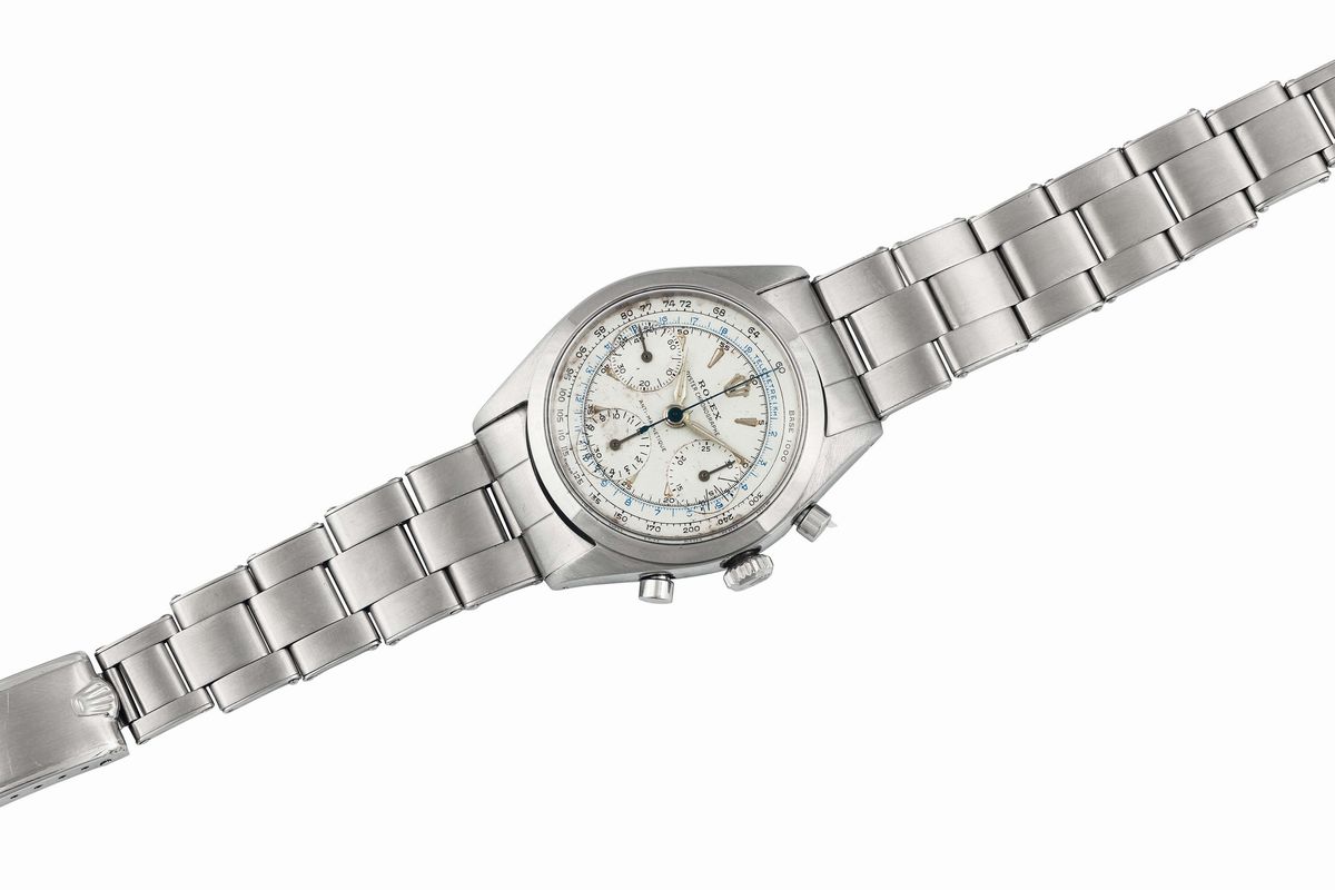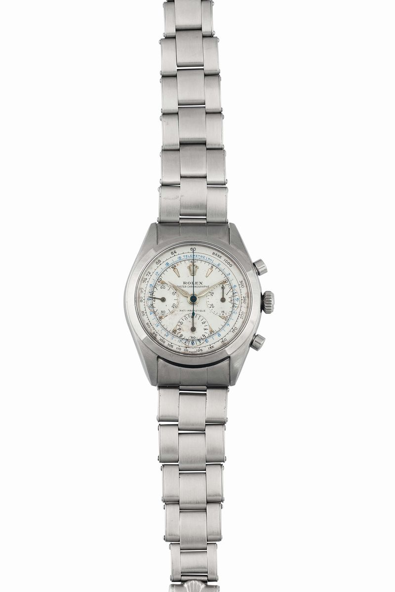 ROLEX, Oyster Chronographe, Anti-Magnetique, cassa No. 530400, Ref. 6234. Raro, orologio da polso, cronografo, impermeabile, in acciaio con bracciale originale Oyster rivettato con chiusura deployante. Realizzato nel 1959 circa