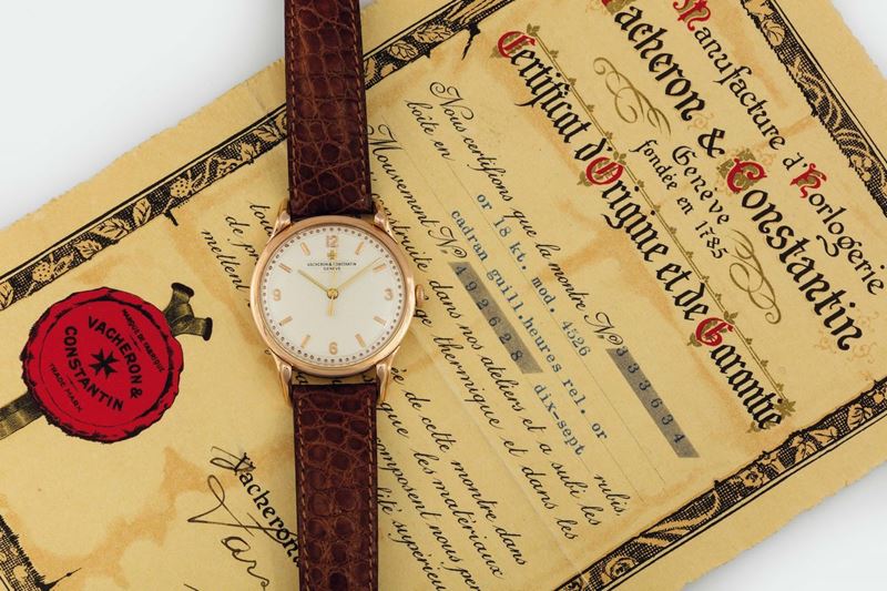 Vacheron & Constantin, Genève,, movimento No. 492628, Ref. 4526. Raro orologio da polso, in oro rosa 18K con fibbia originale in oro. accompagnato dal Certificato di Origine. Realizzato nel 1960 circa
