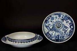 Ciotola in porcellana bianca e blu con coperchio e raffigurazioni di scene di vita quotidiana, Cina, Dinastia Qing, epoca [..]