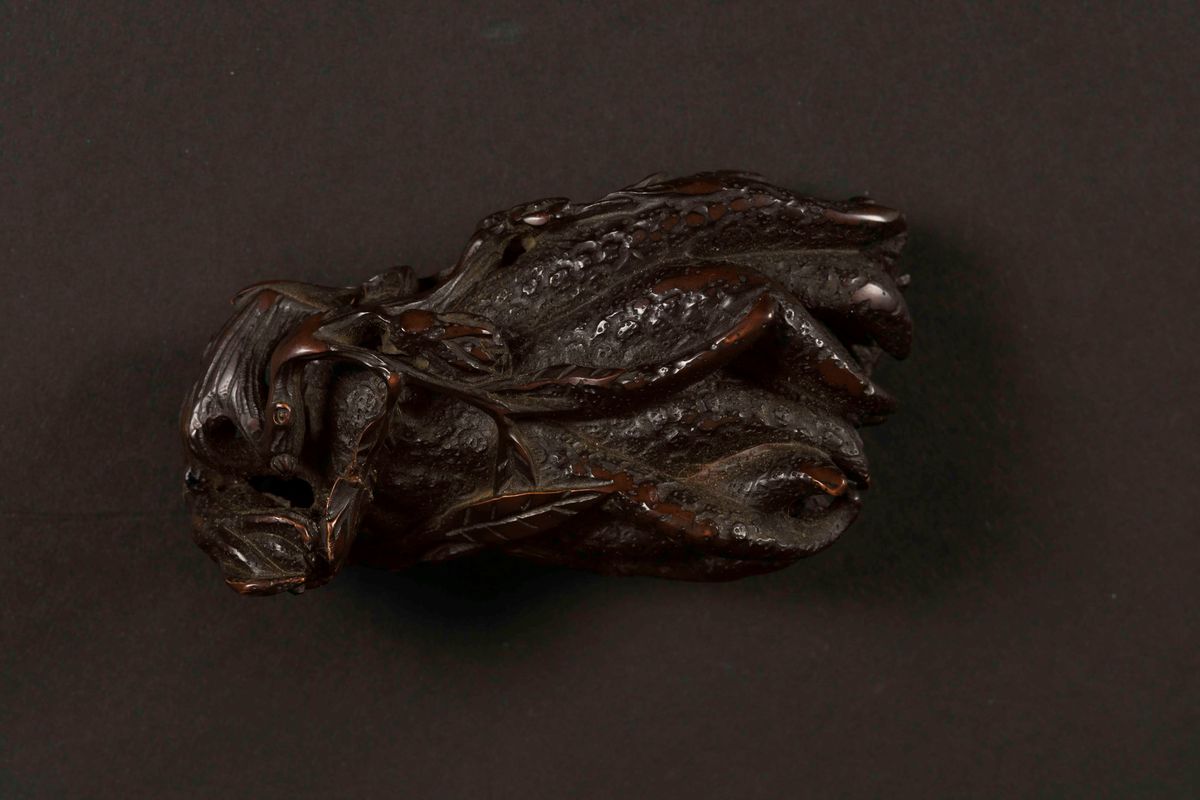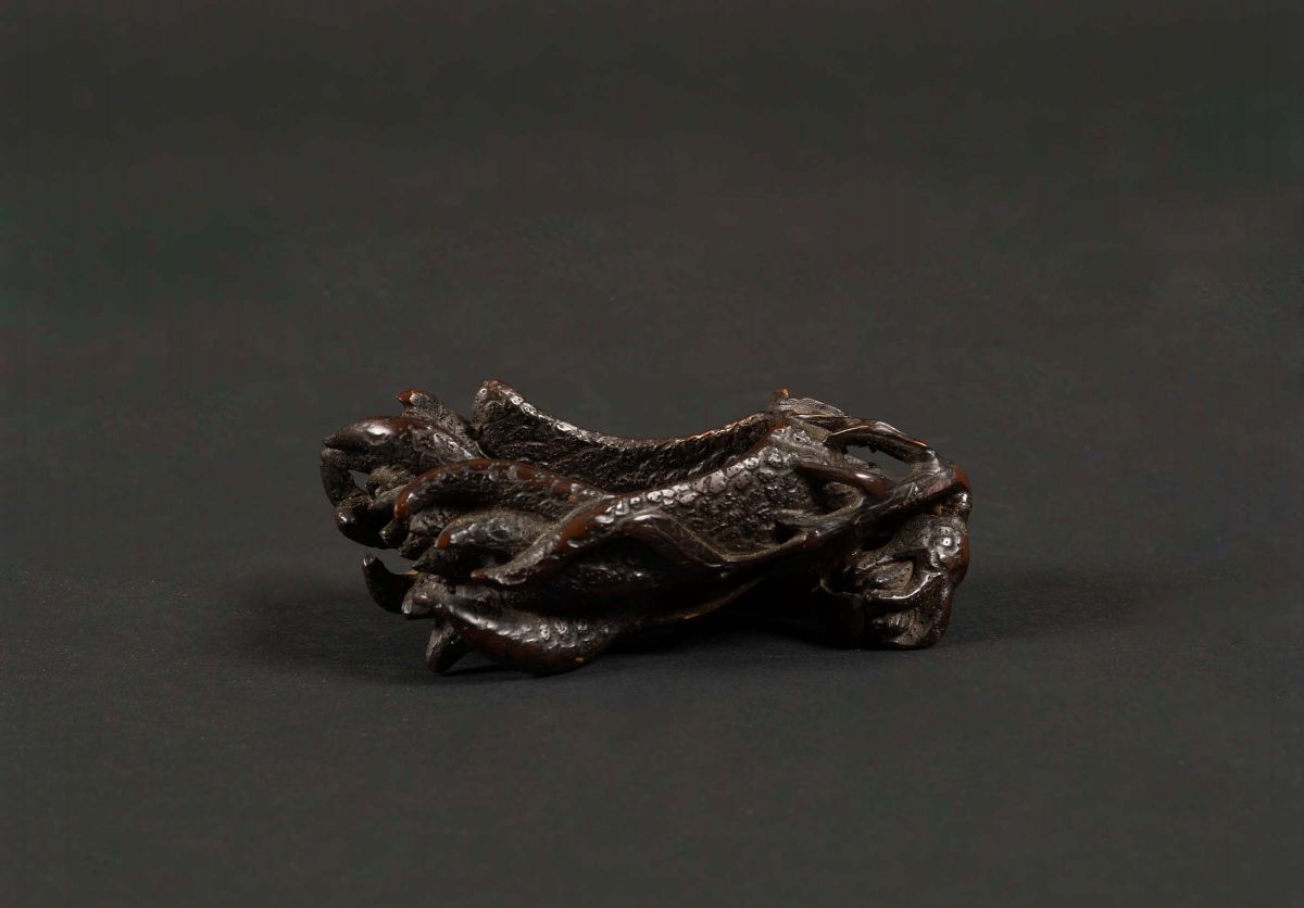 Coppa in legno di bamboo scolpito a forma di rami intreciati, Cina, Dinastia Qing, XIX secolo
