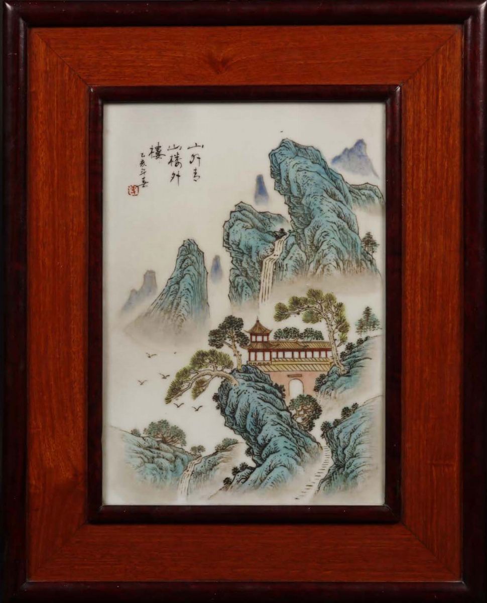 Lotto composto da: placca in porcellana con paesaggio con iscrizione, placca in porcellana con Guanyin con iscrizione, due [..]