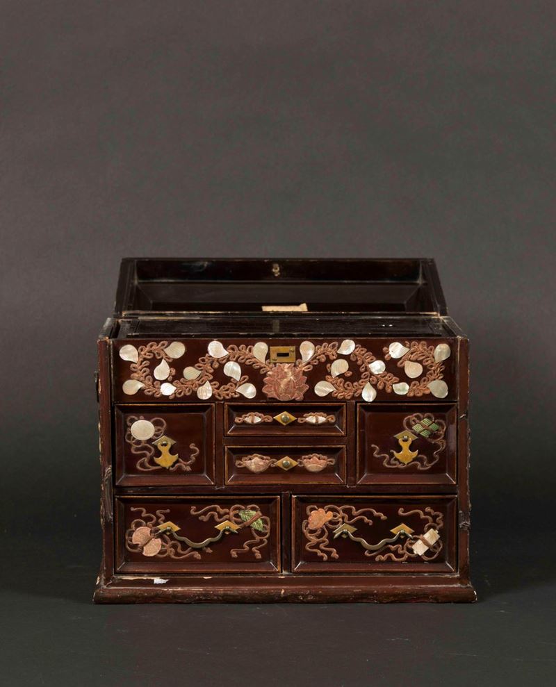 Piccolo stipo in legno con inserti in madreperla, Cina, Dinastia Qing, XIX secolo