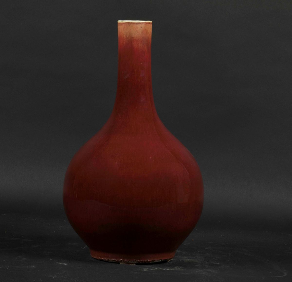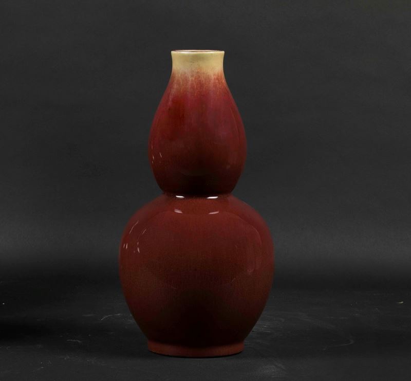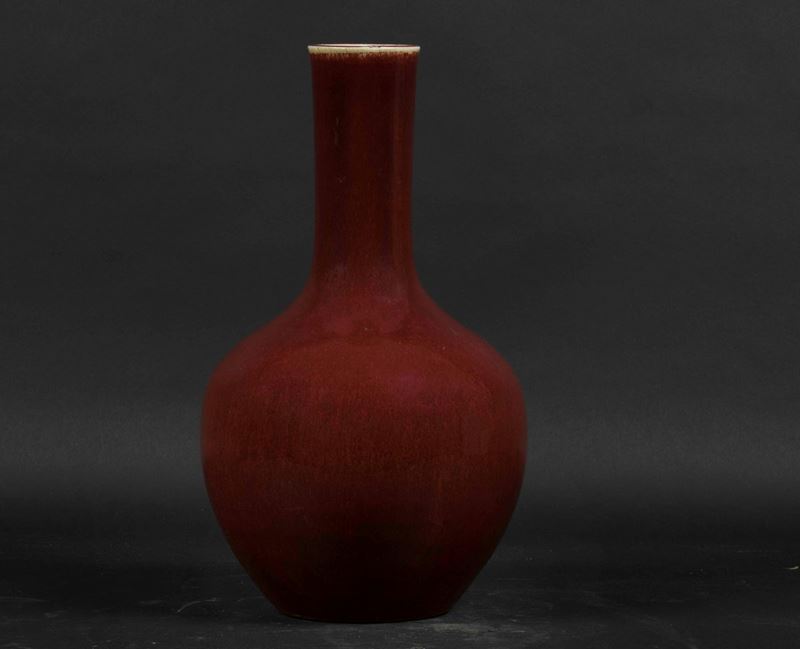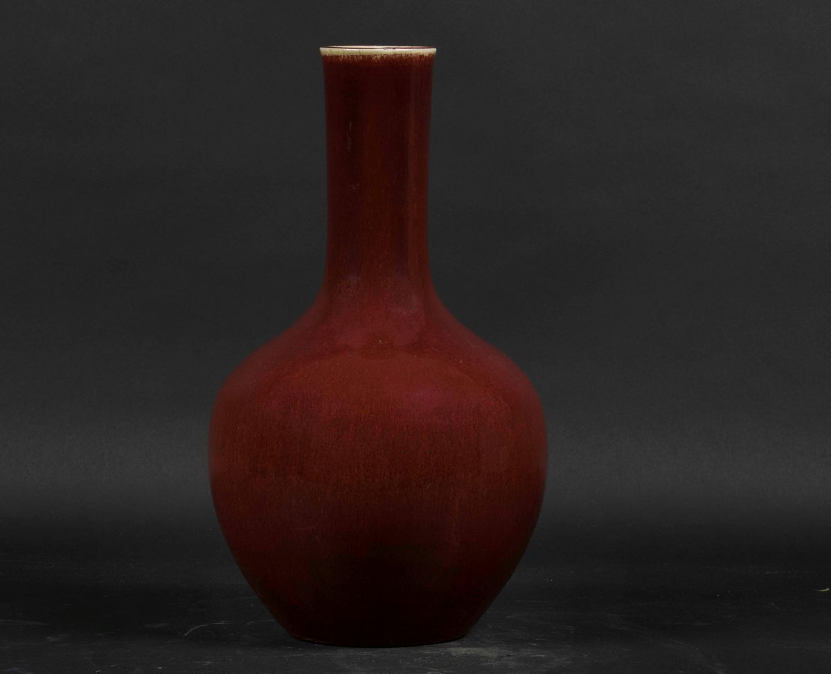 Tre vasi di forme diverse in porcellana monocroma sangue di bue, Cina, Dinastia Qing, XIX secolo