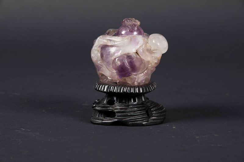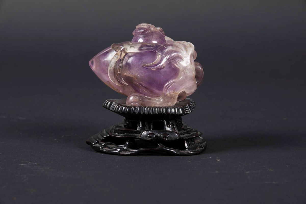 Vaso con coperchio in ametista scolpita con motivi vegetali a rilievo, Cina, inizio XX secolo