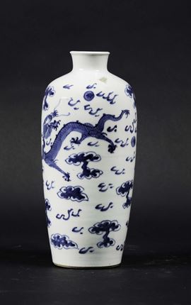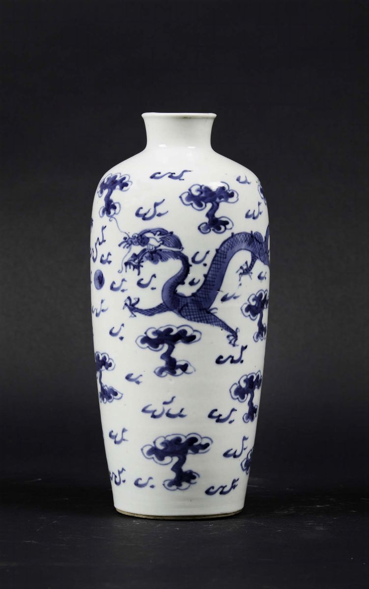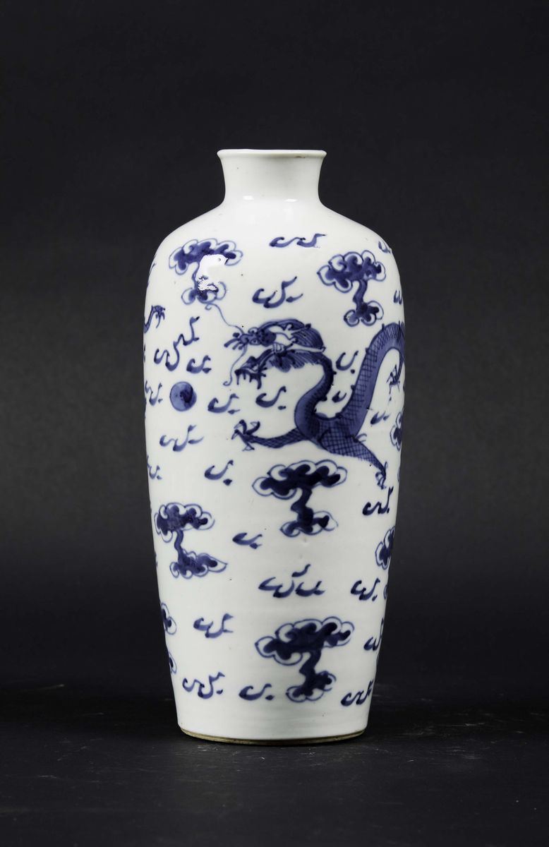 Vaso in porcellana bianca e blu con drago tra le nuvole, Cina, Dinastia Qing, XIX secolo