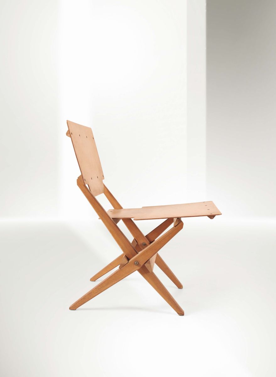 Sedia pieghevole con struttura in legno massello. Seduta e schienale in legno compensato.