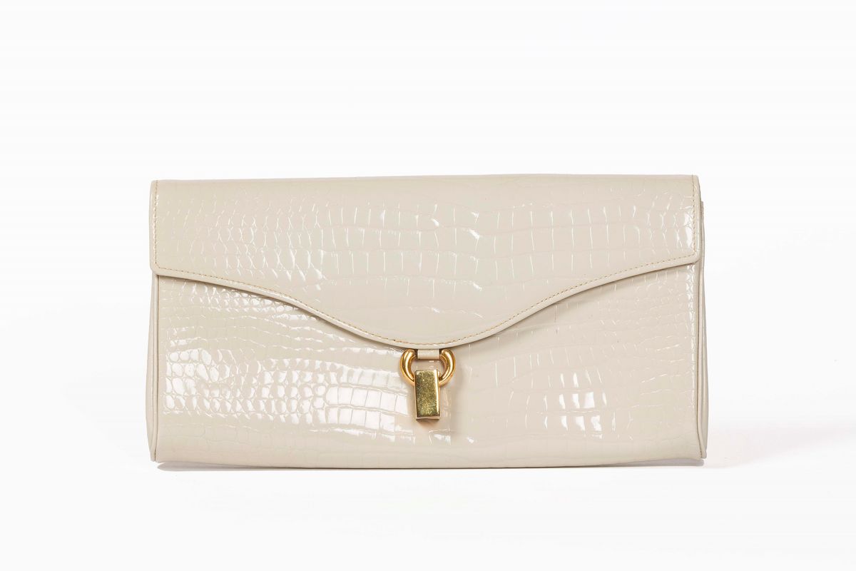 In vernice bianca, chiusura in metallo dorato, cm 22x12, difetti