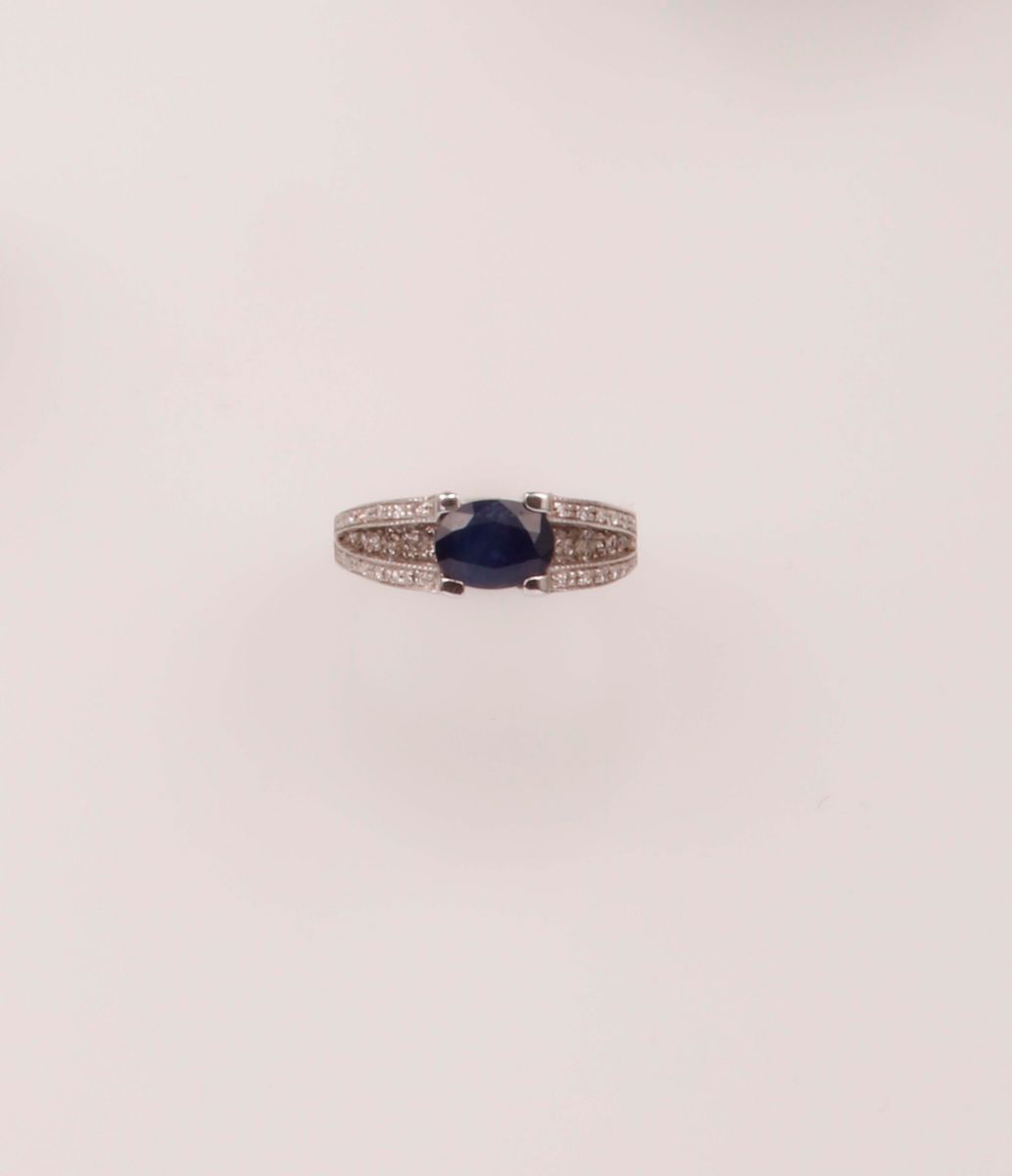 Anello con zaffiro taglio ovale di ct 1,55 circa e diamanti
