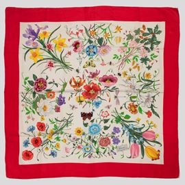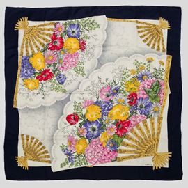 Lotto di 5 Foulards in seta, cm 87x87, difetti su alcuni, macchie evidenti