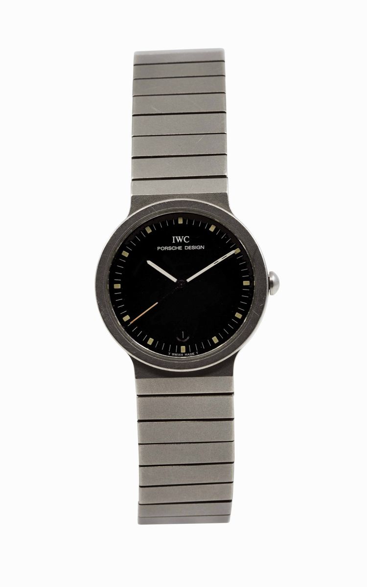 IWC, Porsche Design, orologio da polso, in titanio, al quarzo con datario e bracciale originale. Realizzato nel 1980 circa