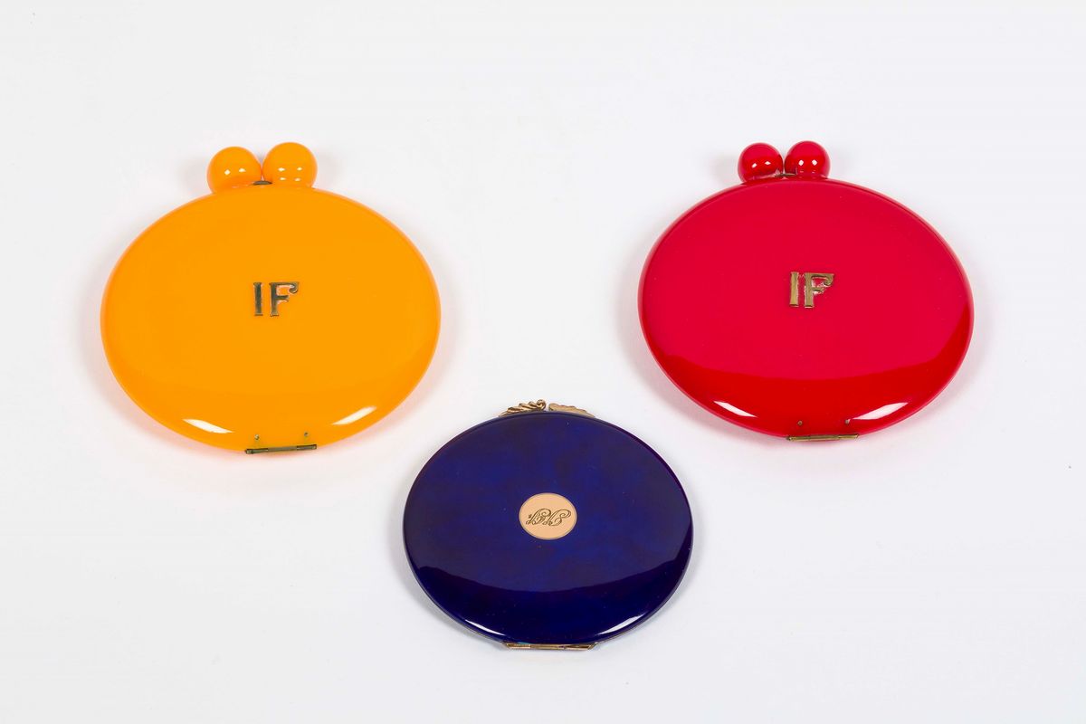 1 Gucci in smalto blu e ottone, 2 in plastica colorati divertenti e originali, tutti con all'interno specchietto, retina e completi.