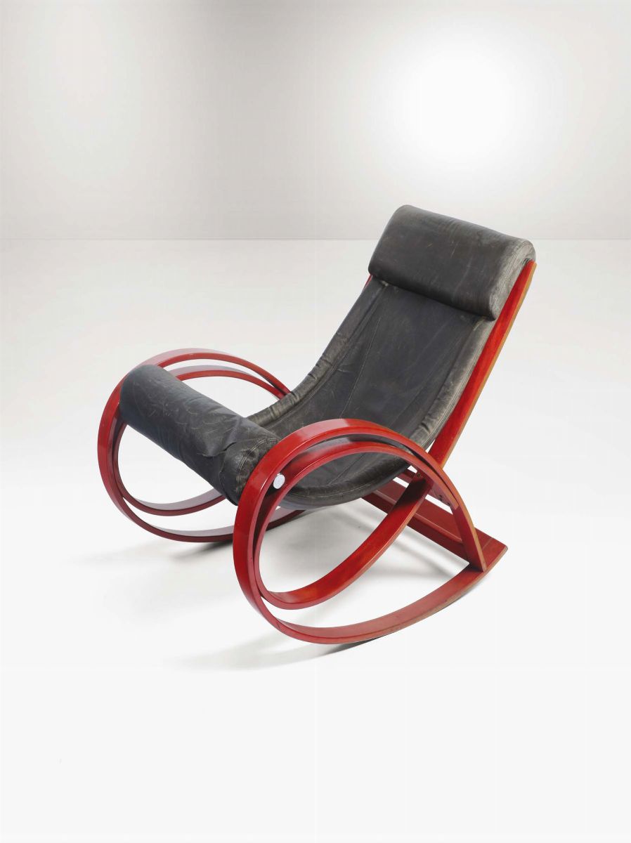 Poltrona a dondolo Sgarsul con struttura in legno curvato.
