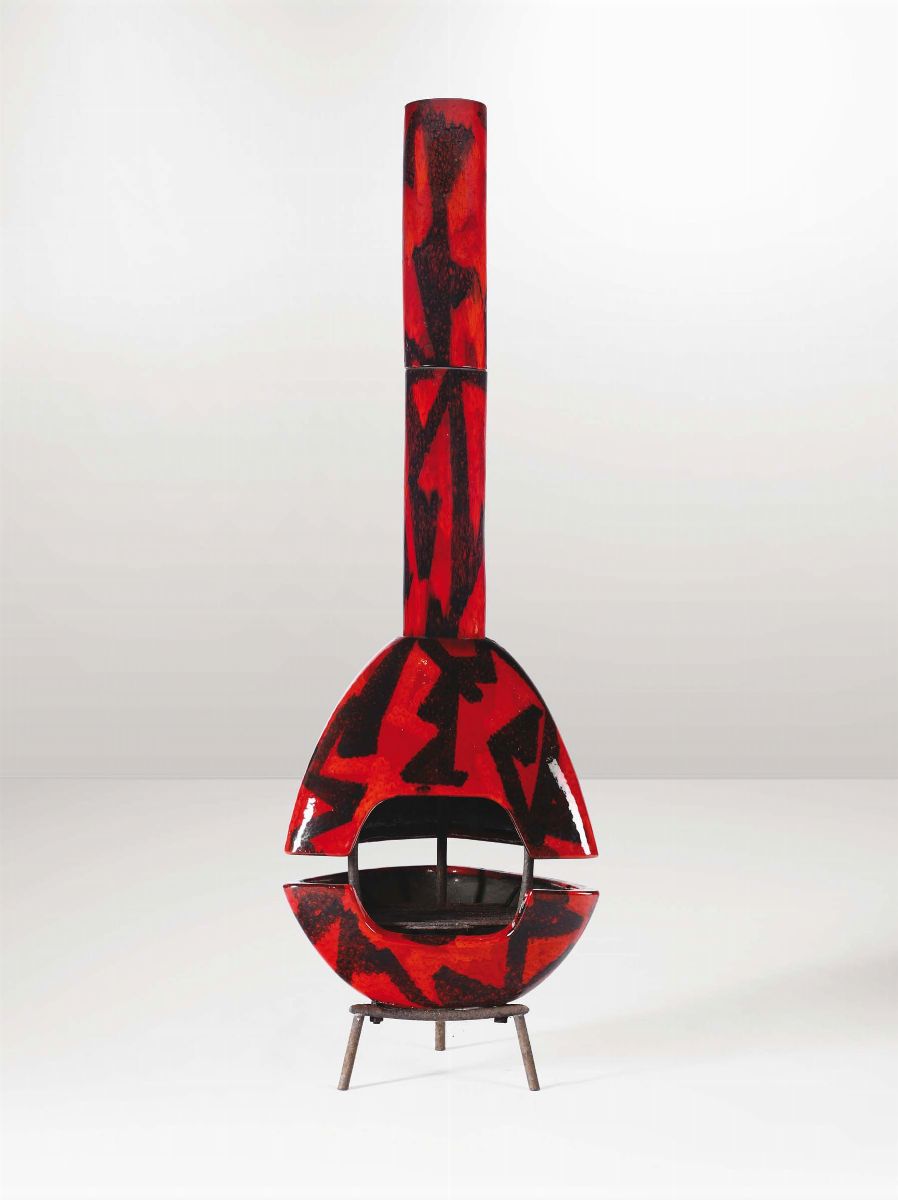 Camino con struttura in metallo e ceramica smaltata.