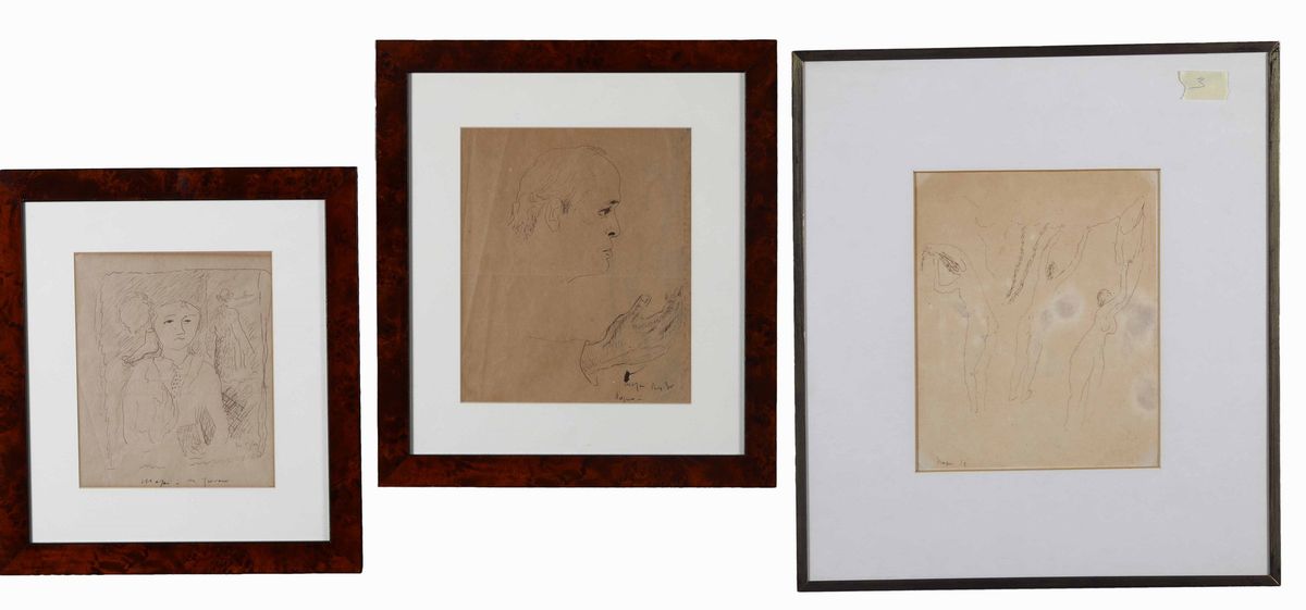 Tre chine su carta, cm 25x21, cm 27x22 e cm 22x18, firmate