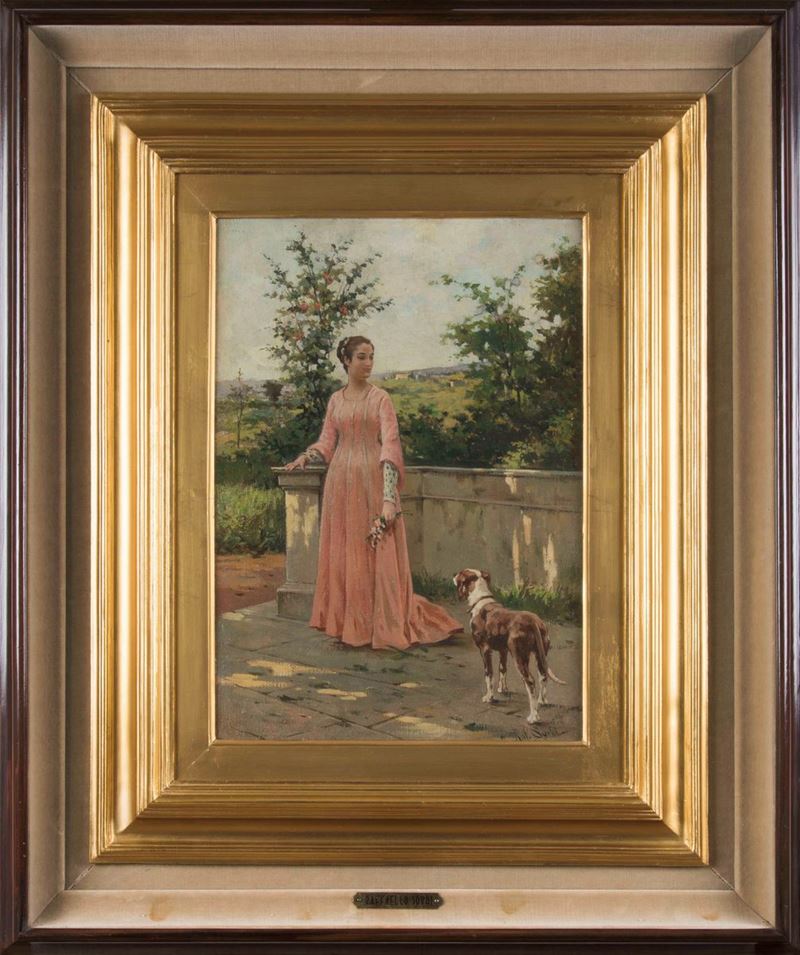 Raffaello Sorbi (1844-1931) Giovane fanciulla con cane