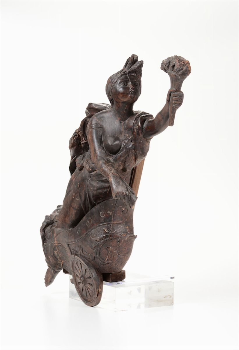 Aurora in legno scolpito. Arte barocca italiana del XVIII secolo