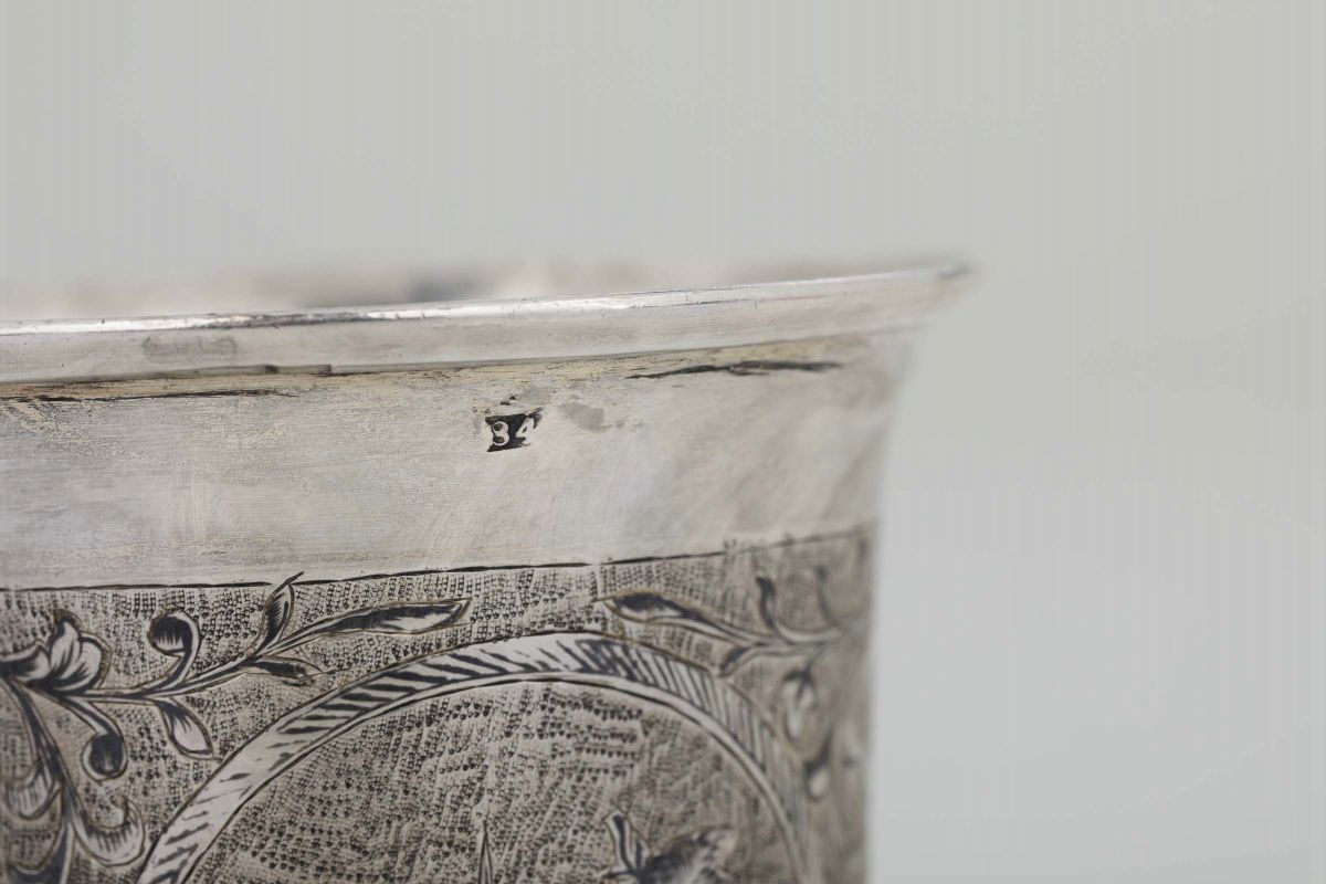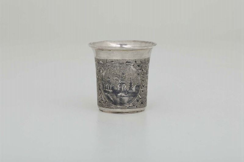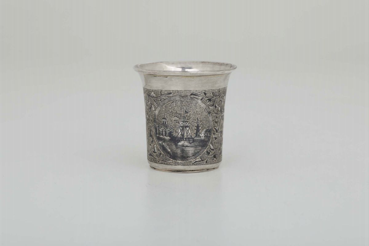 Bicchiere in argento sbalzato, cesellato, dorato e niello. Mosca 1848
