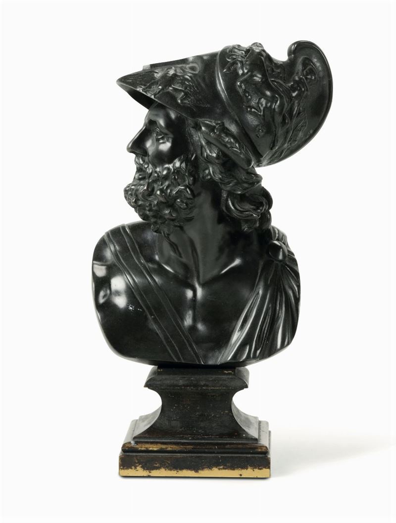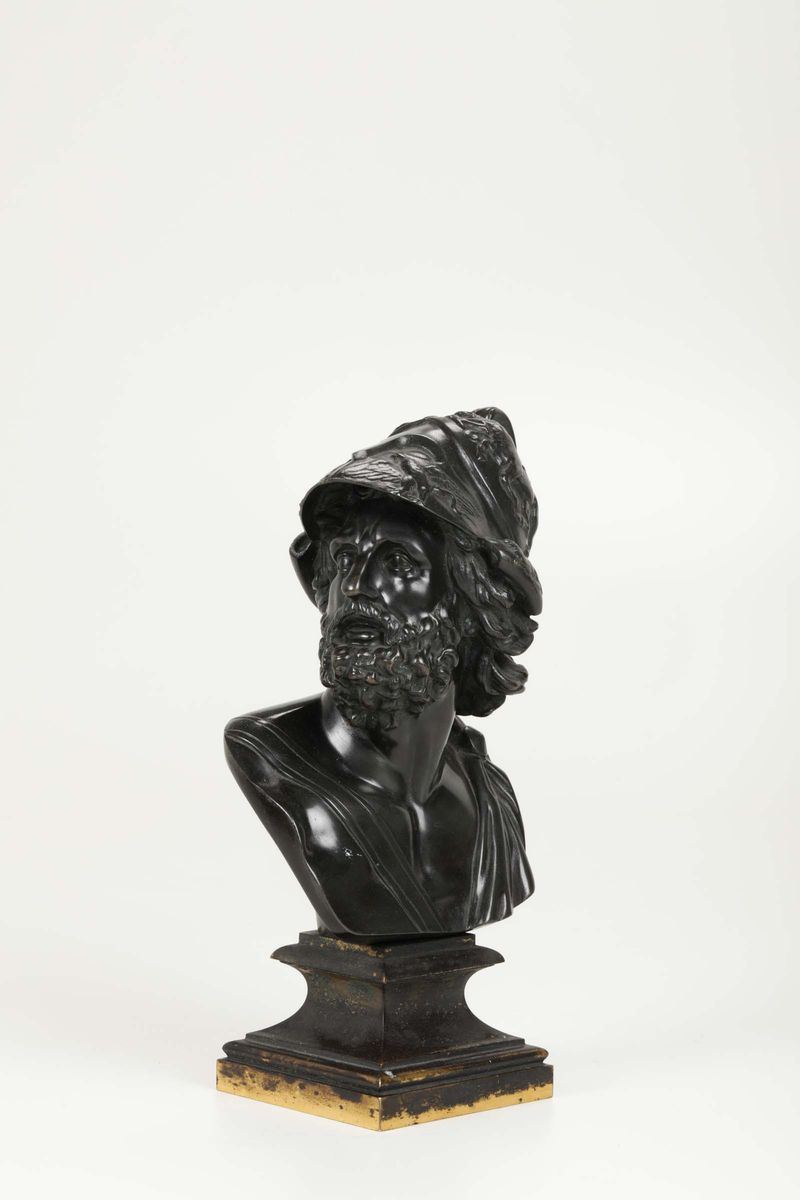 Busto di guerriero greco in bronzo fuso e patinato, fonditore francese del XIX secolo