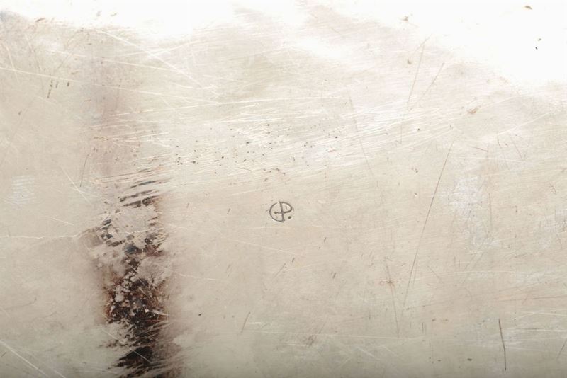 Centrotavola in metallo argentato siglato sotto la base GP (Gio Ponti?), XX secolo
